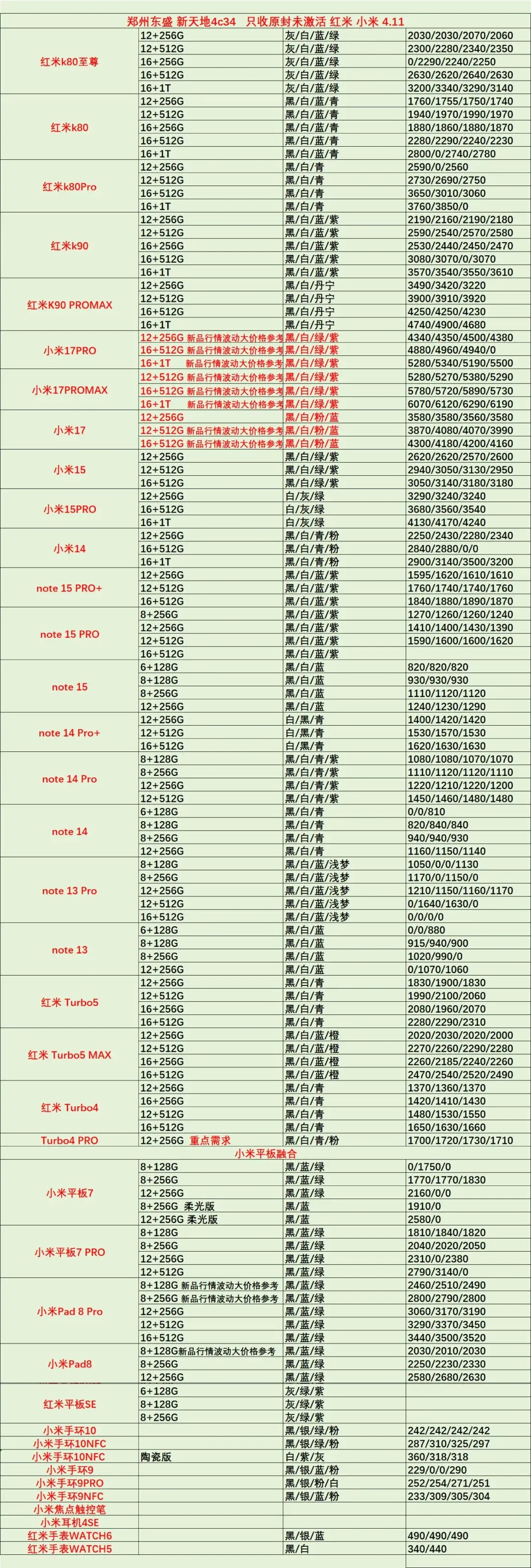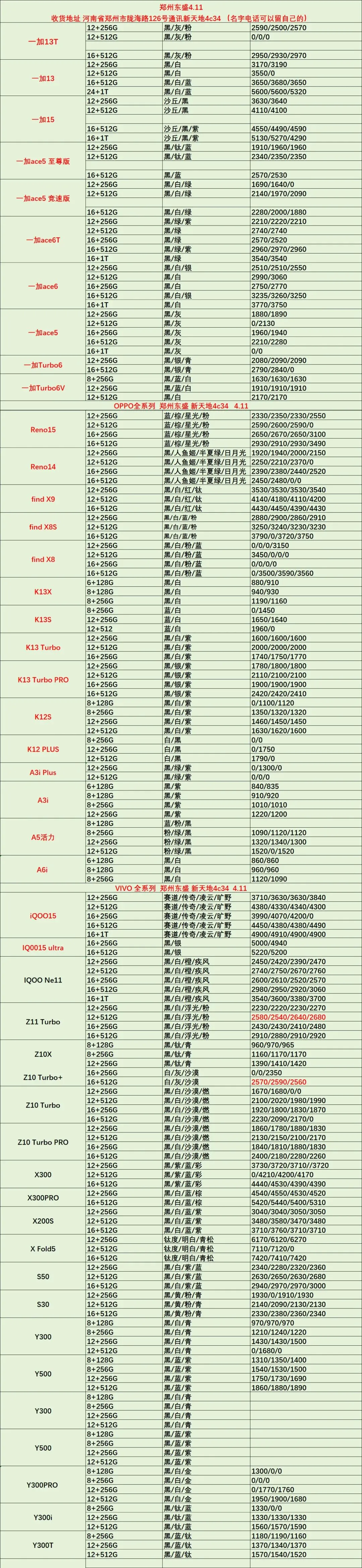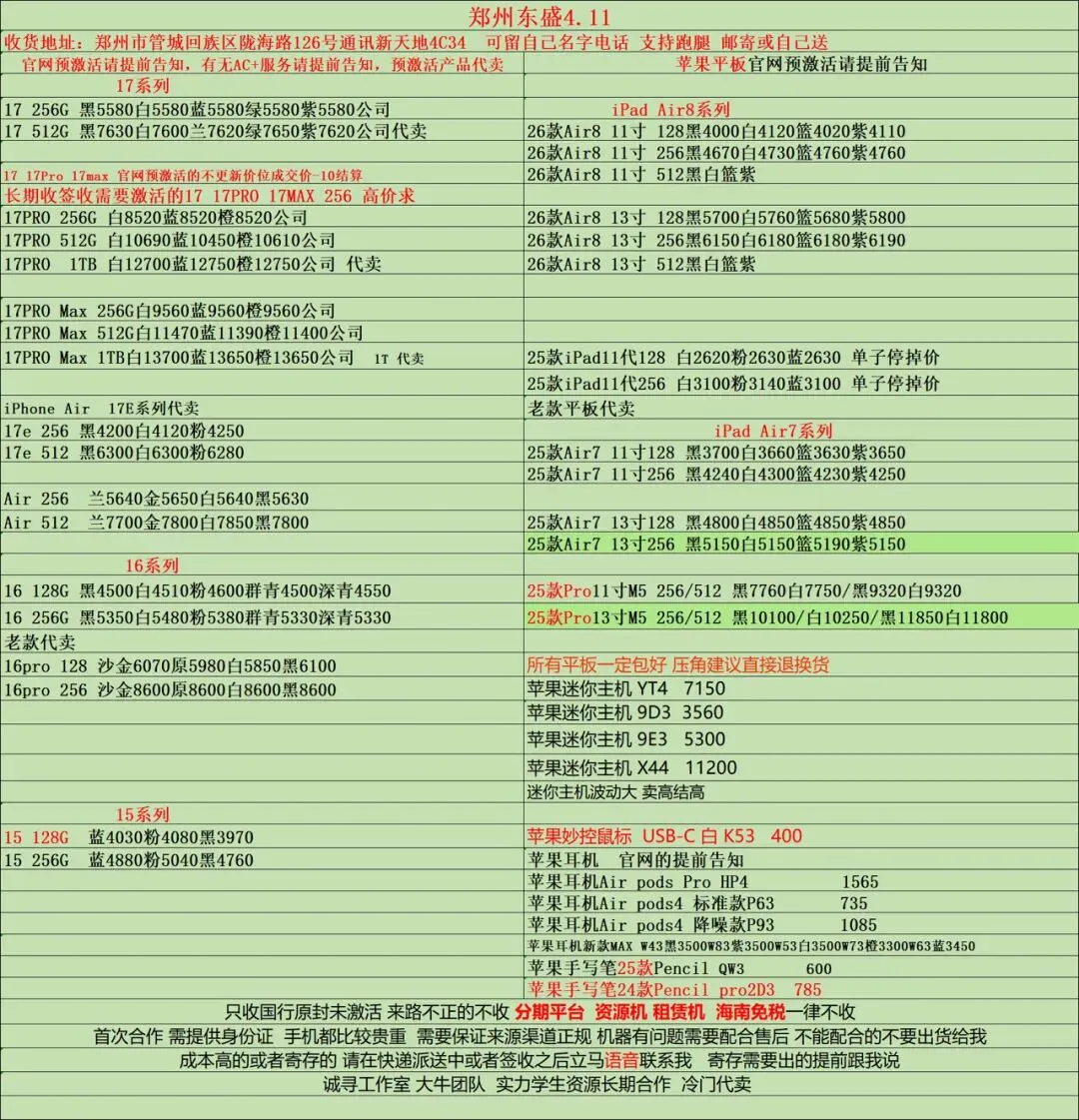 郑州东盛通讯新天地4.11号行情
