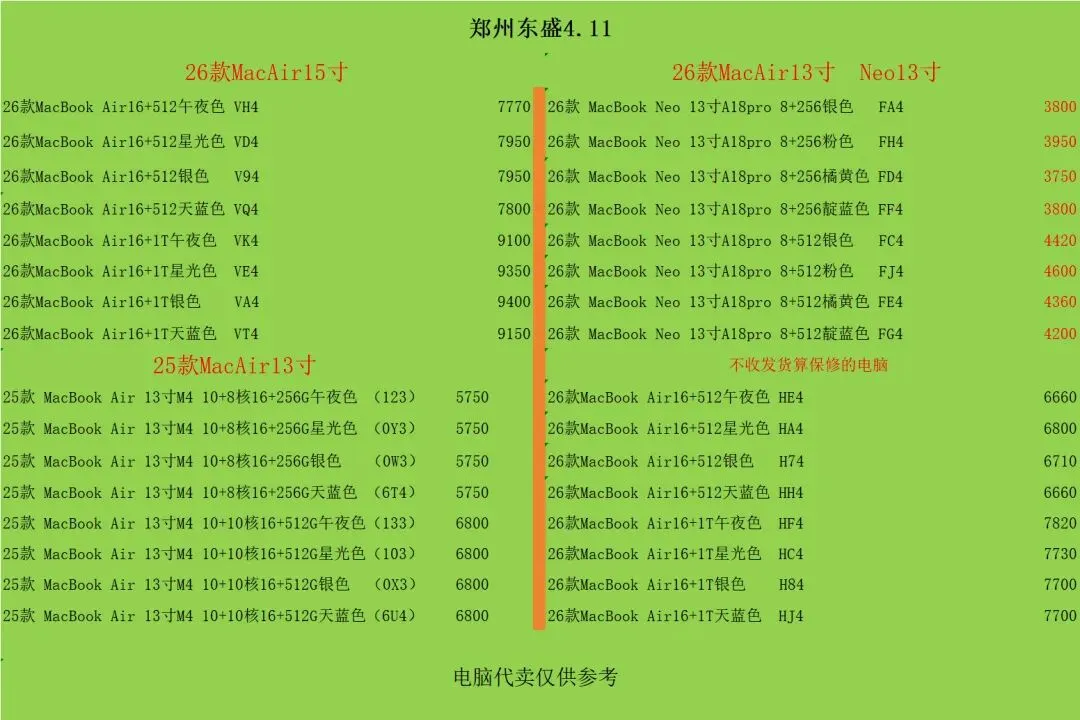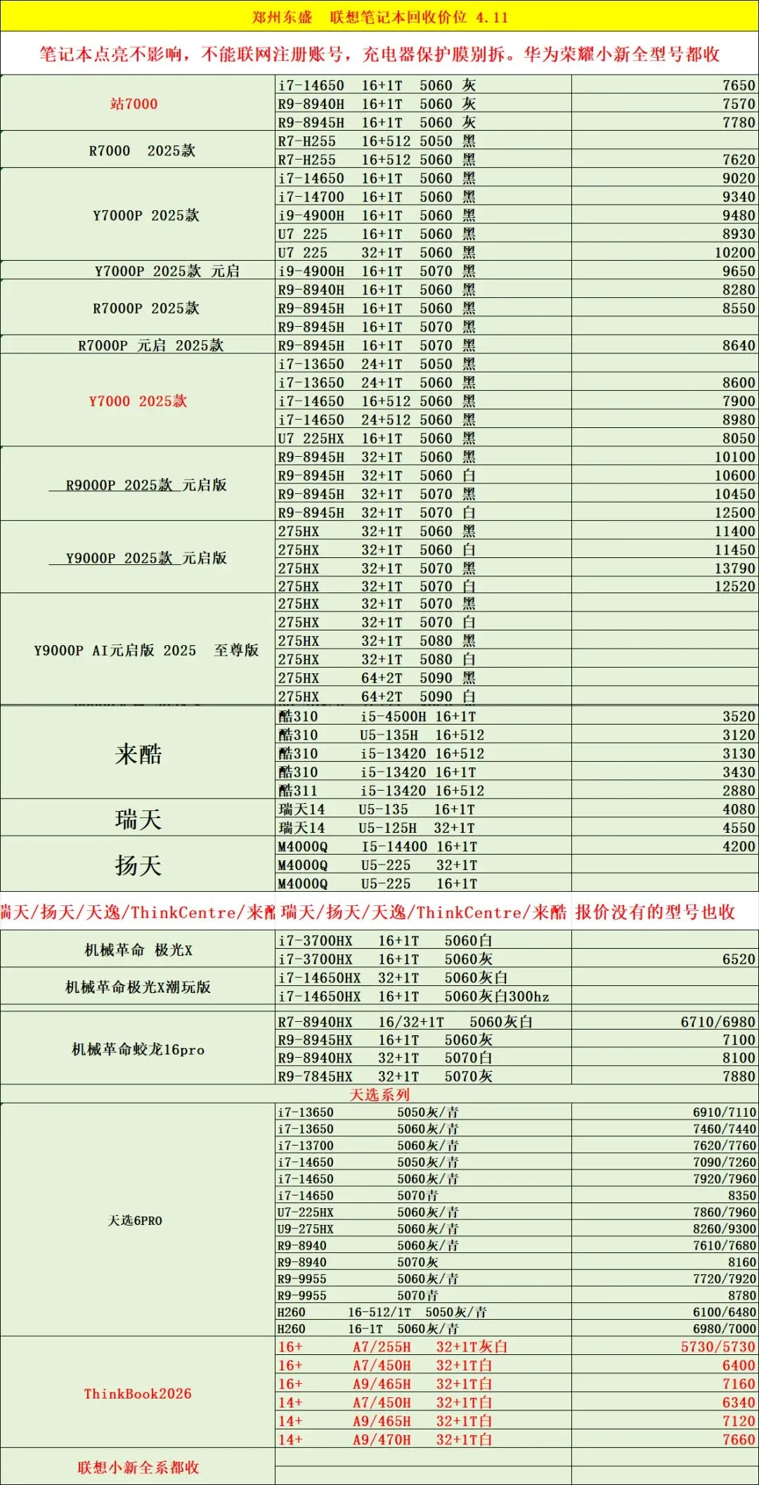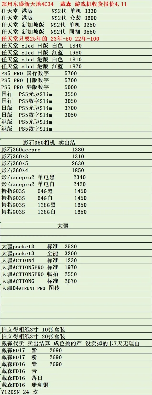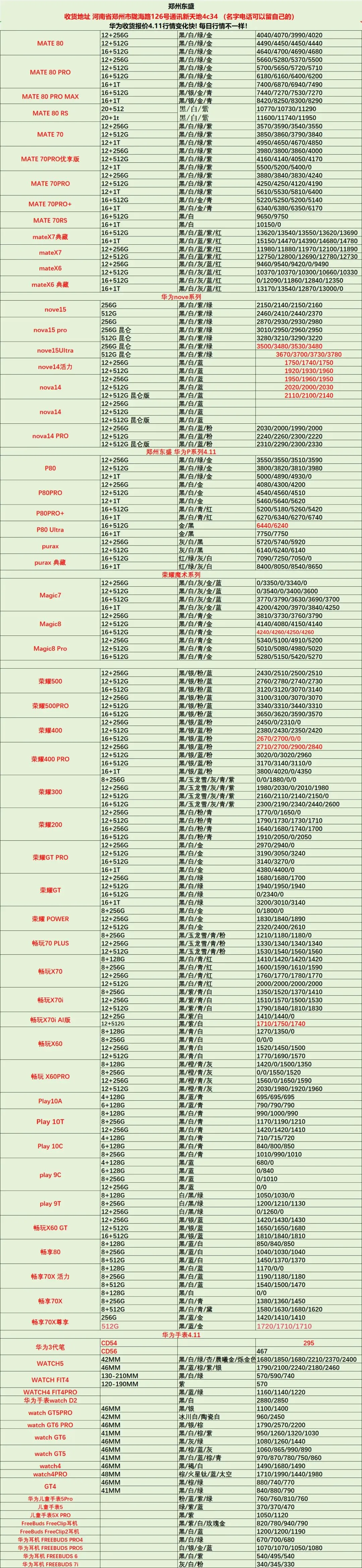 郑州东盛通讯新天地4.11号行情