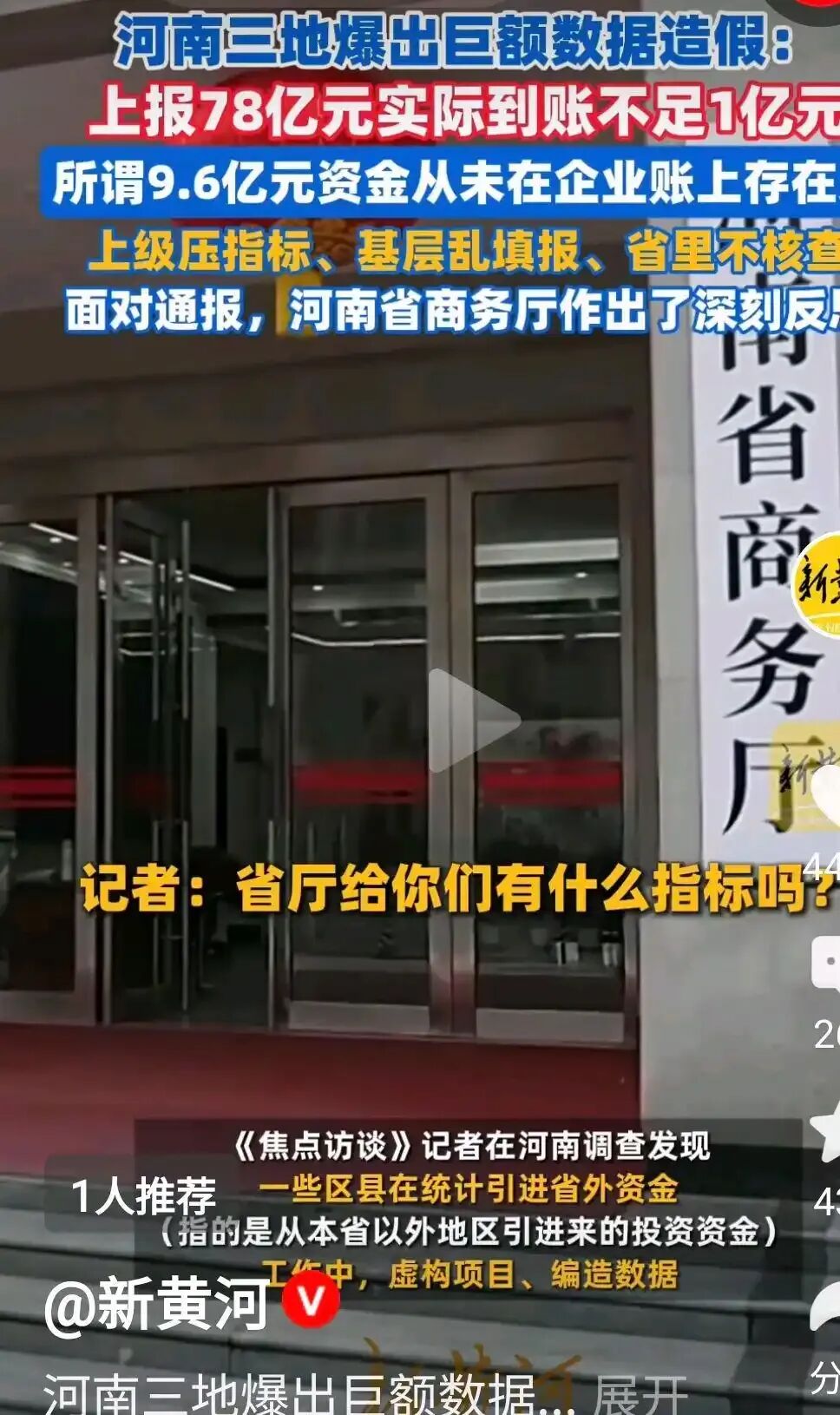 2026年4月,央视《焦点访谈》曝光河南省漯河市舞阳县、郑州市管城区、商丘市柘城县三地招商引资数据严重造假事件:舞阳县2025年1-11月上报省外到位资金78亿元,实际仅1亿余元,虚假比例高达98%;管城区虚构9.6亿元省外投资项目,连企业负责人签名都前后矛盾;柘城县虚报资金超40亿元。这一事件绝非个别基层干部的乱作为,而是中国县域治理体系中长期存在的"数字政绩"顽疾的集中爆发。管城区才造假9.6亿,相比舞阳和柘城县还是非常保守的,也一同被树立为黑典型有点冤屈。中国县域政治的核心运行机制——晋升锦标赛。在这一机制下,上级政府通过量化的政绩指标对下级政府进行排名考核,考核结果直接与干部的晋升、奖惩、政治前途挂钩。这种"以政绩论英雄"的评价体系,使得县域干部形成了"为晋升而生产政绩"的行为逻辑,当真实的发展成果无法满足考核要求时,"数字注水"就成为了一种理性选择。河南招商数据造假事件完美印证了这一理论。河南省商务厅每年向各地市下达省外资金增长指标,要求每年递增2%-3%,并实行月度进度通报排名制度。这一指标通过"省-市-县"三级行政体系层层分解、逐级加码,最终全部压在区县商务局的肩上。舞阳县商务局局长胡广华在采访中坦言:"在基础虚高的情况下,仍然要求有递增,所以我们也是很无奈。"这句话道出了基层干部的普遍困境:前任为了政绩已经将数据基数抬高,后任如果如实填报就会出现"负增长",不仅会被通报批评,还会直接影响仕途。县域政治中存在着政绩继承与路径依赖现象。一旦某个地方开始数据造假,就会形成"造假惯性",后任只能继续在虚假的基础上"注水",否则就会暴露前任的问题,同时也显得自己能力不足。这就解释了为什么胡广华会说数据造假"沿袭好多年了"。在这种逻辑下,招商引资不再是为了推动地方经济发展,而是变成了一场"数字游戏":本地企业的投资被包装成省外资金,口头估算的数据被随意加码,未落地的项目被提前计入报表,甚至连银行流水都可以跨年度拼凑。