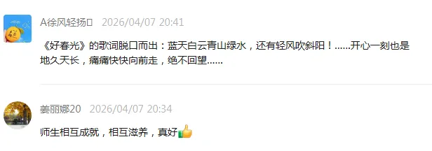 “被孩子们的笑容治愈了!忙碌的日子里,真的需要这样的松弛感”“师生相互成就,相互滋养,真好”“马超群老师太会引导了,把教育藏在快乐里”“真棒!孩子们跳得很投入”,网友们的留言质朴又温暖,纷纷表示被孩子们的纯粹打动,也读懂了作品背后“忙里偷闲、拥抱快乐”的深意。