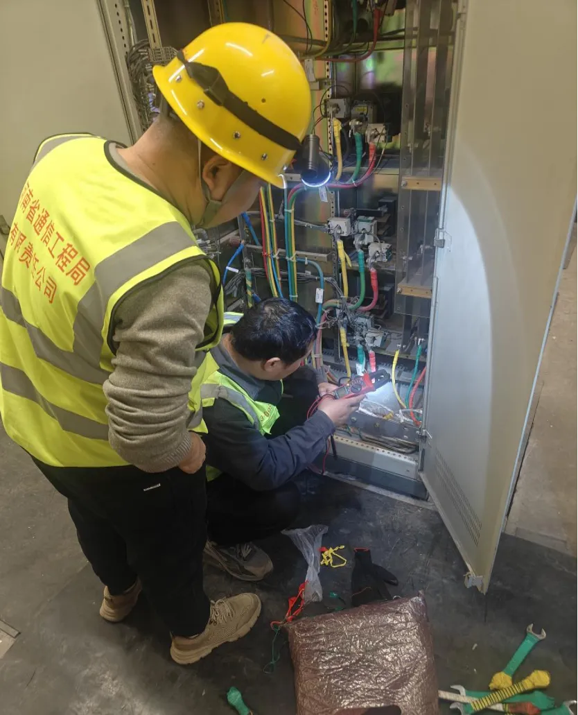电源割接工作涉及机房核心设备,容不得丝毫马虎。本次割接涉及使用直流供电的980、BBU、OLT三类关键设备,为最大限度降低对业务的影响,高新区割接人员严格遵循“低业务风险原则”,采用差异化割接策略。针对980、OLT设备,采用不断电割接方式,全程保障设备正常运行,确保数据传输、业务不受影响;针对BBU设备,在做好数据备份、应急准备的基础上,采用断电割接方式,快速完成负荷转移与设备调试,将停机影响降至最低。施工过程中,技术人员严格按照操作规范开展作业,做好绝缘防护、线路检测等工作,全程有专人现场督导,确保每一个环节都符合安全标准,杜绝各类安全事故发生。