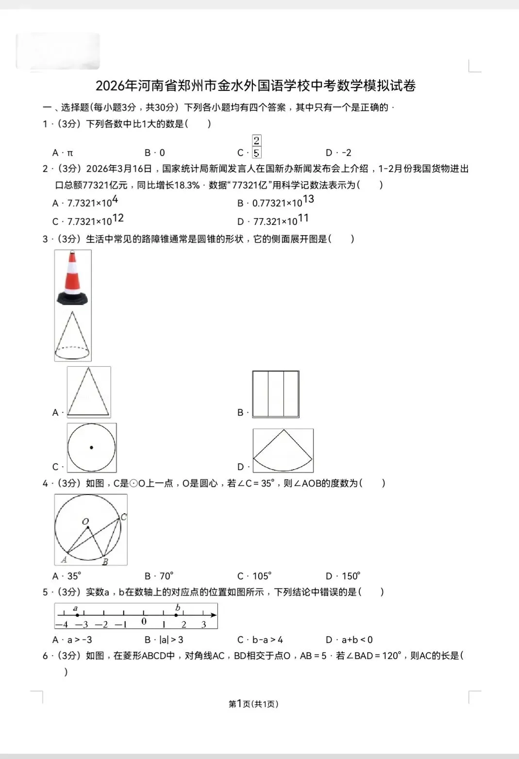 2026河南省郑州市金水外国语九年级数学一模试卷