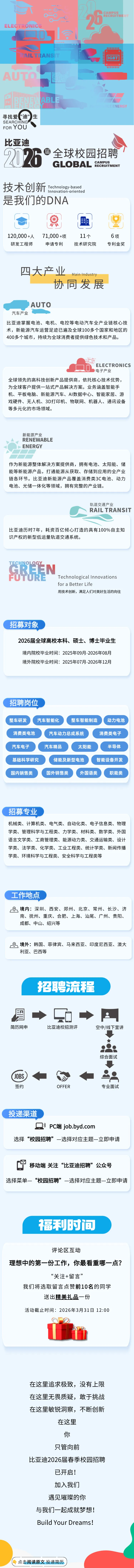 >【郑州招聘】比亚迪2026届春季校园招聘正式启动!