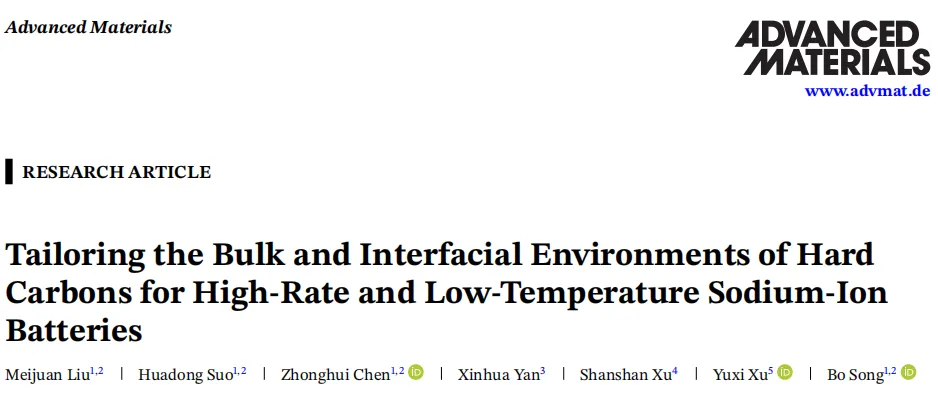 Tailoring the Bulk and Interfacial Environments of Hard Carbons for High-Rate and Low-Temperature Sodium-Ion Batteries, Advanced Materials, 2026; 0:e73018