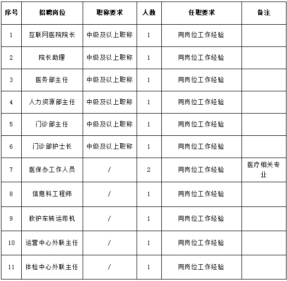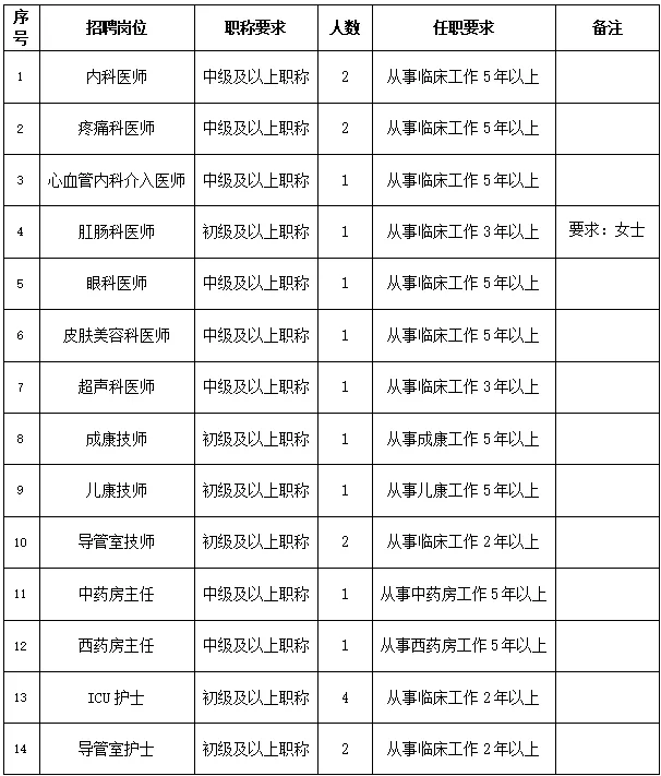 根据医院发展需要,现面向社会公开招聘以下岗位人才: