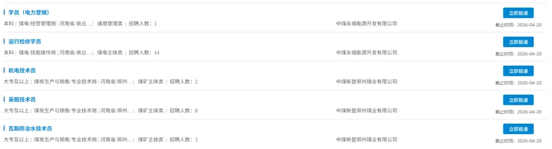 中国中煤统招计划: