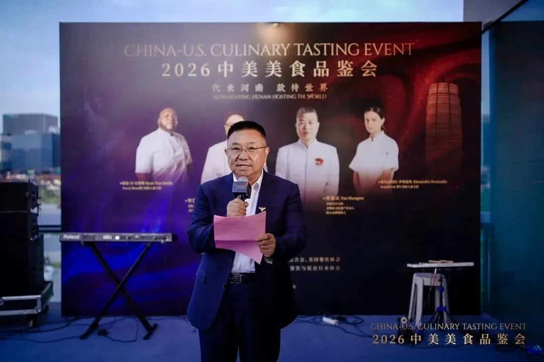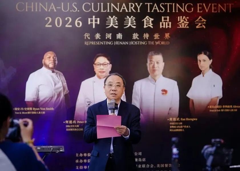 4月10日,中国郑州北龙湖金融岛,以“代表河南 款待世界”为主题的2026中美美食品鉴会开幕式在中和豫宴举行。来自中美两国餐饮行业的名厨大师、知名企业家、艺术家、食客代表齐聚一堂,共同见证这场跨越太平洋的美食文化盛宴。