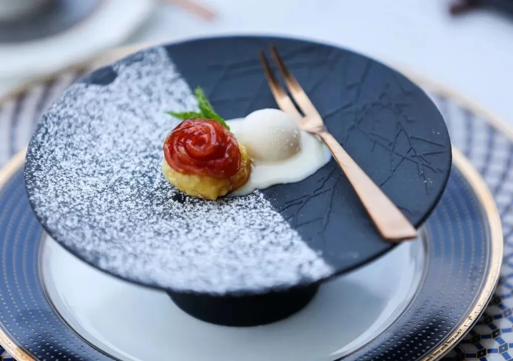 此外,黑胡椒红酒溏心干鲍、波士顿龙虾佐擂茶酱、羊排烩面、寺河山苹果派等菜品,每一道都在传统与现代、东方与西方之间找到了巧妙的平衡点。