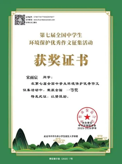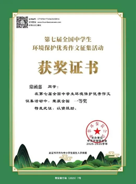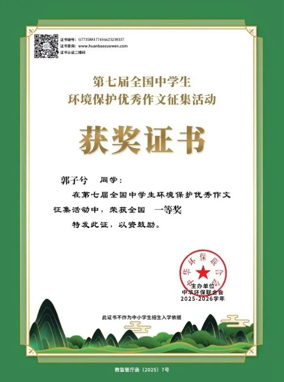 郑州外国语新枫杨学校学子在第七届全国中学生环境保护优秀作文征集活动中共荣获65名国奖,160名省奖,成果斐然!