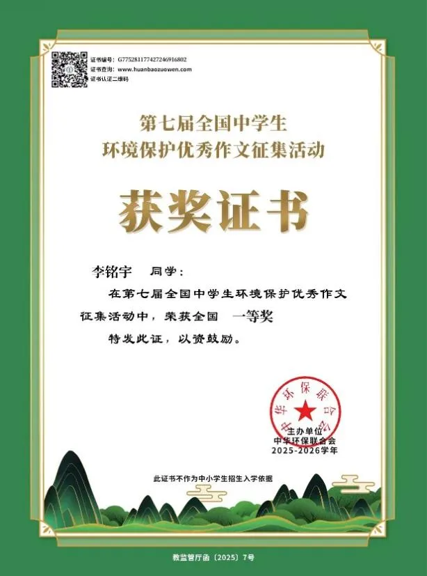 全国中学生环境保护优秀作文征集活动,是教育部 2022-2025学年白名单赛事,由中华环保联合会主办,学术支持涵盖北京大学、中国人民大学等顶尖高校专家团队,是极具正规性与权威性的全国性大型作文赛事。