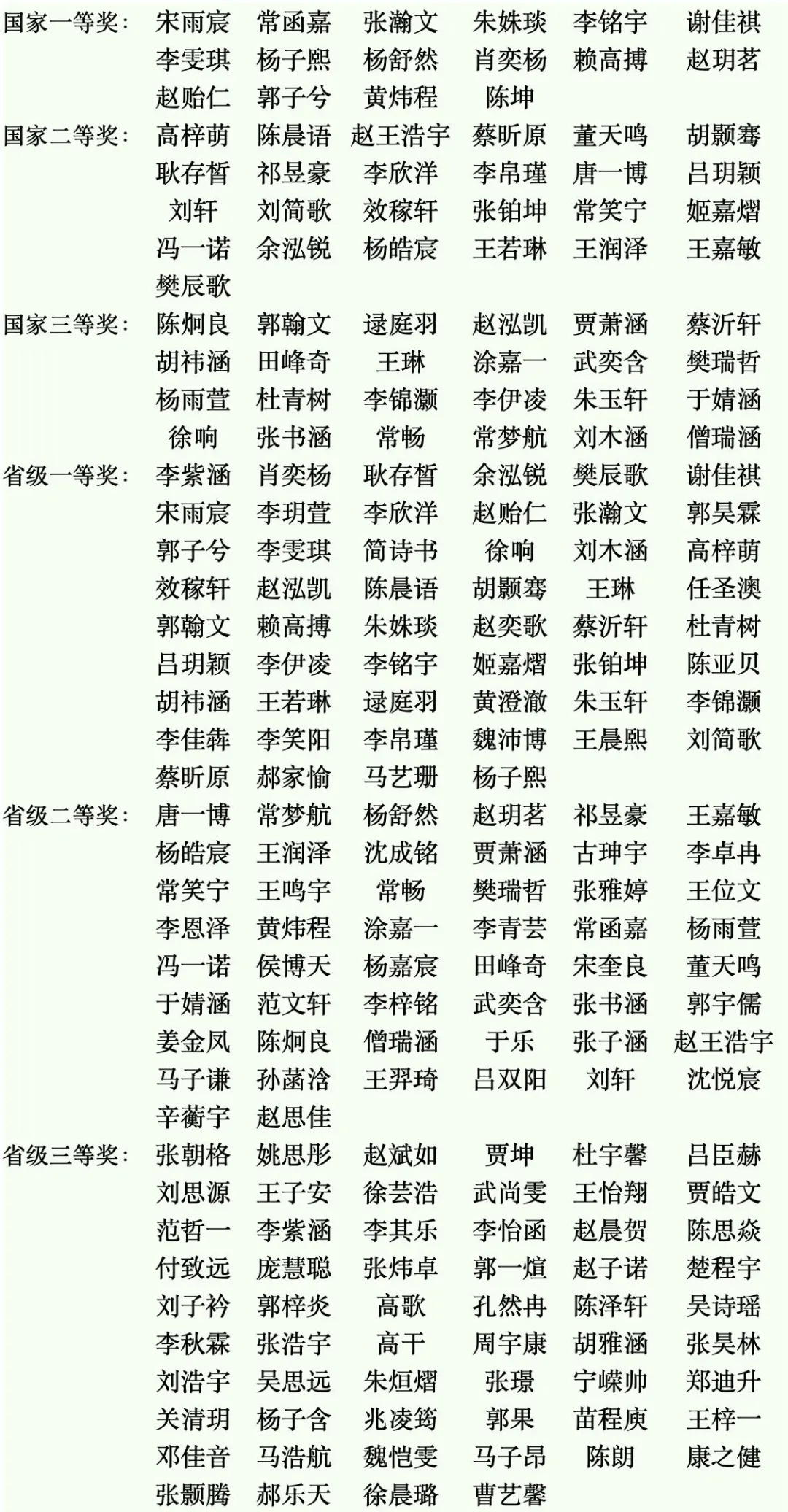 其中国家一等奖16人,国家二等奖25人,国家三等奖24人;省一等奖52人、省二等奖50人、省三等奖58人。
