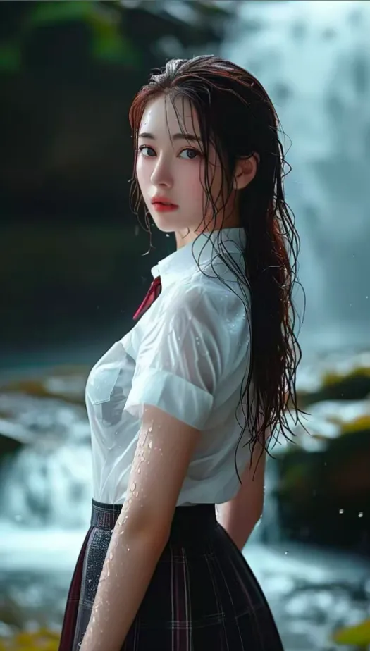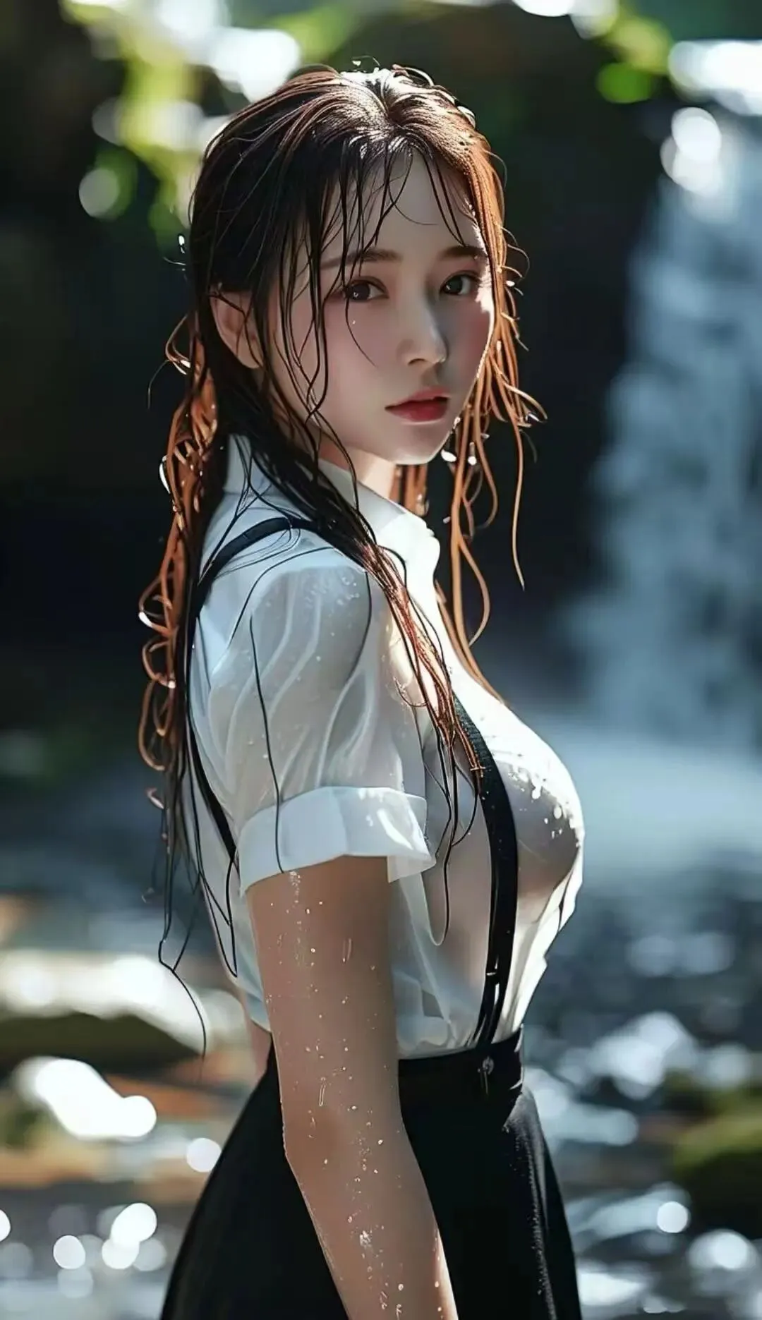 不必追问她从哪里来,不必探寻她要往哪里去。只需要在这一刻,放下手机,放下工作,放下所有的烦心事,静静看着这帧画面,让山风、流水、还有这份干净的温柔,一点点抚平你心里的褶皱