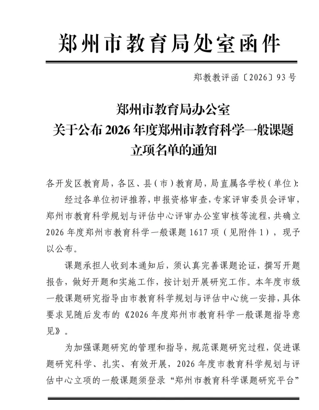 >郑州市2026一般课题立项名单出来了