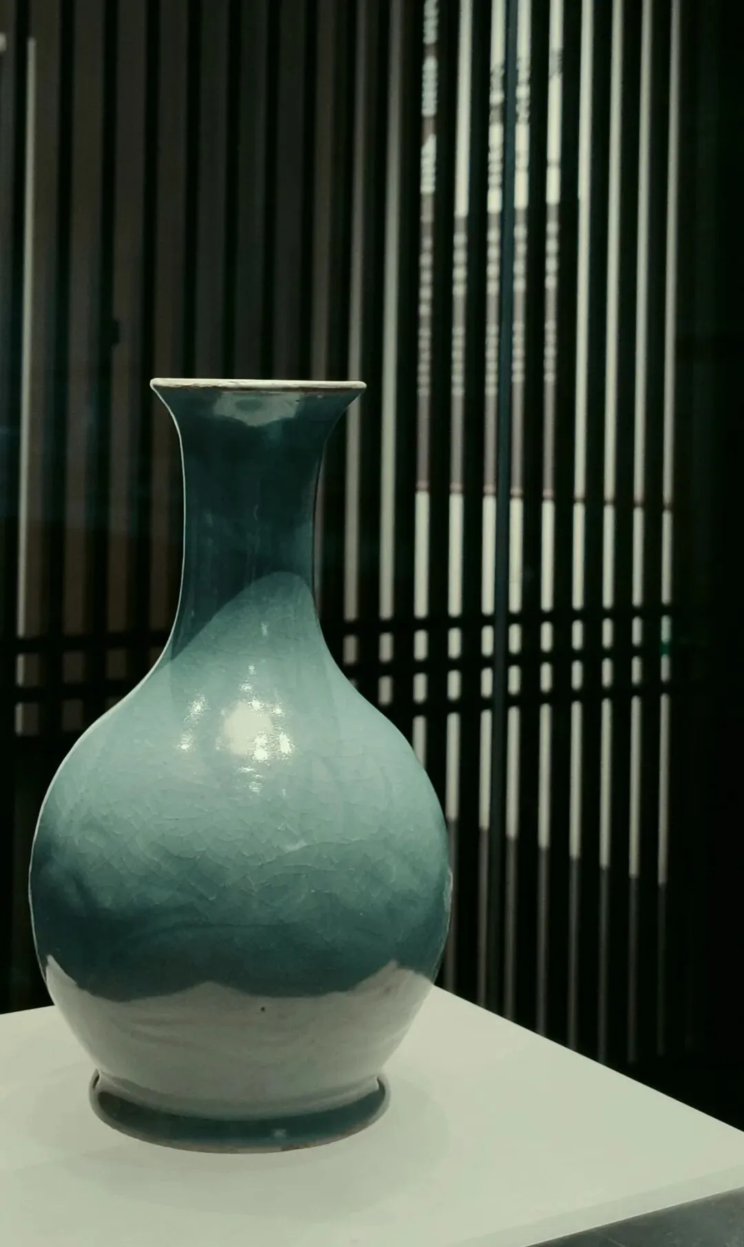河南省博物院,汝窑天蓝釉刻花鹅颈瓶