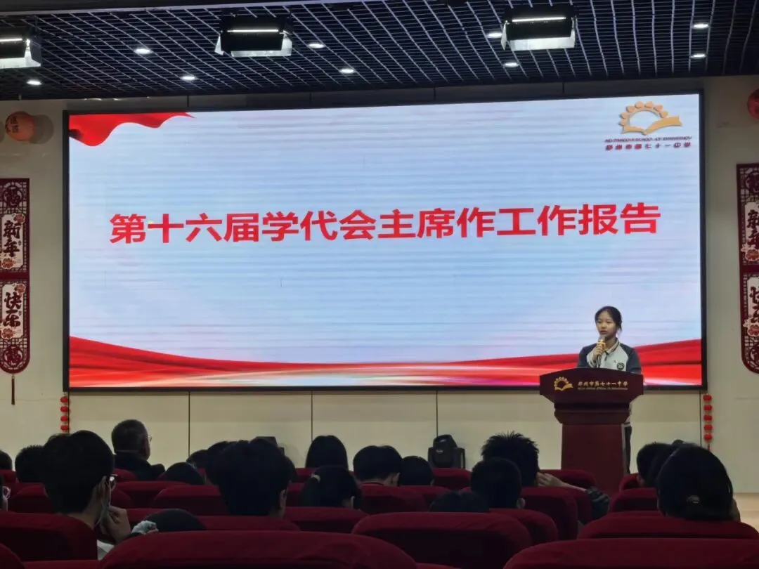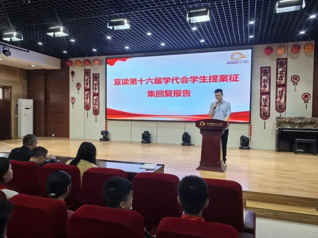 首先政教处副主任常淦宣读了《第十六届学代会学生提案收集情况报告》。本次大会共征集提案及建议40份,涵盖校园生活、学习管理、文化建设、后勤服务等多个领域,精准聚焦学生学习生活及校园发展实际。政教处、教务处、办公室相关负责人逐一回复相应提案,清晰说明解决策略,切实保障学生诉求落地见效。