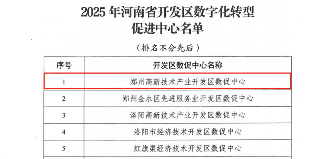 近日,河南省发展和改革委员会正式下发《关于印发2025年河南省开发区数字化转型促进中心名单的通知》,郑州高新区成功入选首批省级开发区数字化转型促进中心,成为全省数字化转型战略布局的核心载体,以“数据驱动、场景牵引、生态协同”的数字化转型新范式,为河南开发区高质量发展注入数智动能。