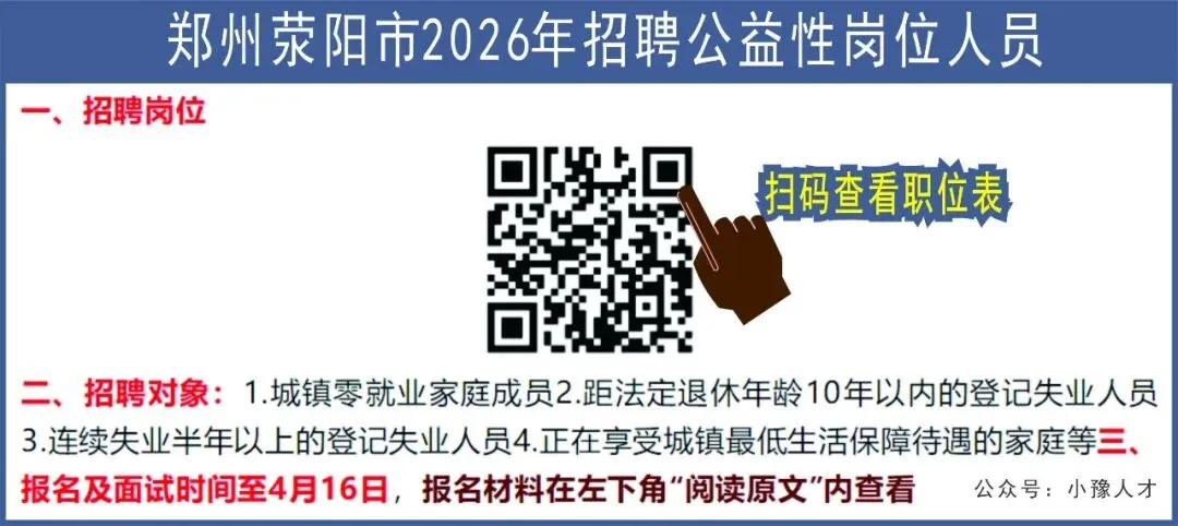 >郑州荥阳市招聘100名工作人员【至4.16】