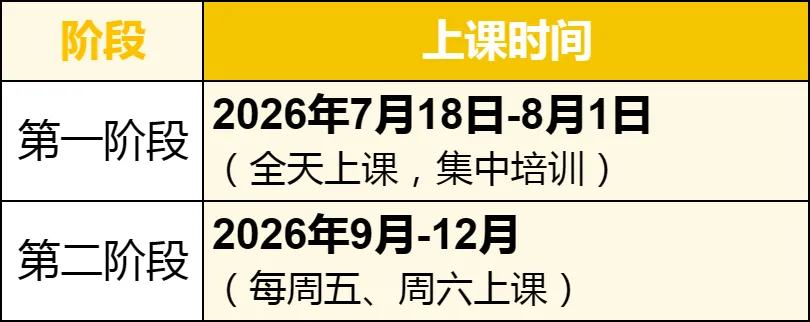 培训采用线下方式授课,课程分为两个阶段: