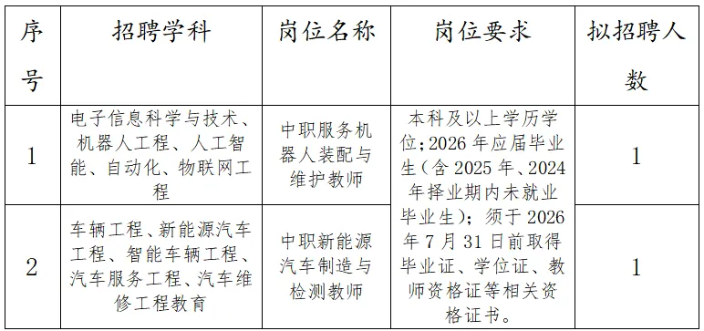 二、招聘学科及要求
