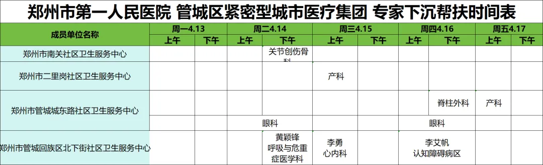 >下周专家门诊出诊速览:郑州市第一人民医院、南院区4月13日—4月19日专家门诊医师排班表