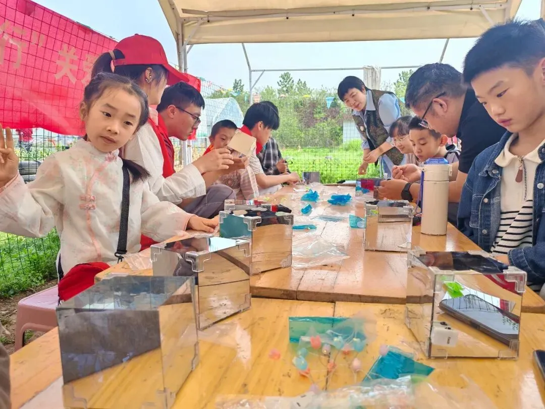 随着灯光亮起,全场瞬间被点亮,一盏盏融合了奇思妙想的“花海小夜灯”新鲜出炉。灯光透过花瓣的缝隙柔和溢出,既照亮了桌面,也照亮了孩子们亮晶晶的眼睛。孩子们捧着自己亲手制作的小夜灯,脸上洋溢着自豪与喜悦的笑容,更纷纷向身边的小伙伴展示自己的作品,现场满是幸福与感动。