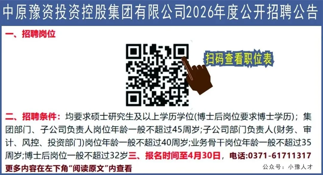 >中原豫资公司(郑州)面向社会招聘工作人员30名【至4.30】3
