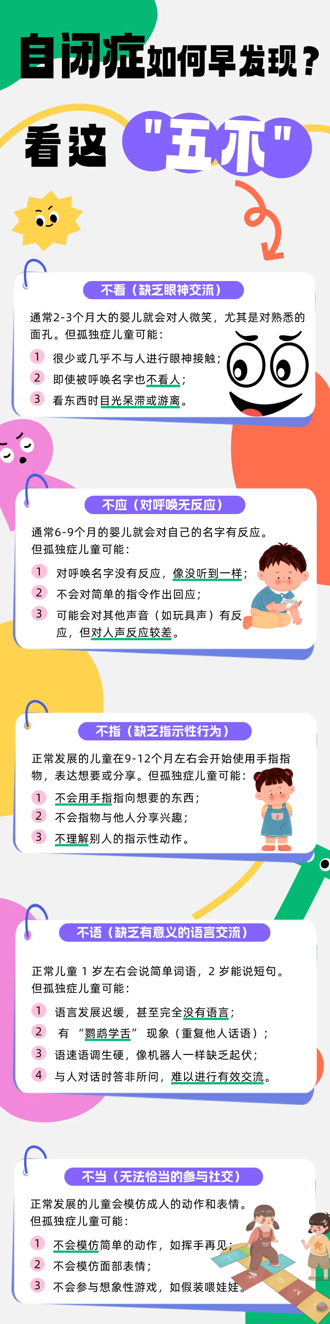 为此,我们专门咨询了发育行为科医生,总结出5个在家就能观察的典型表现,帮家长早识别、早干预。