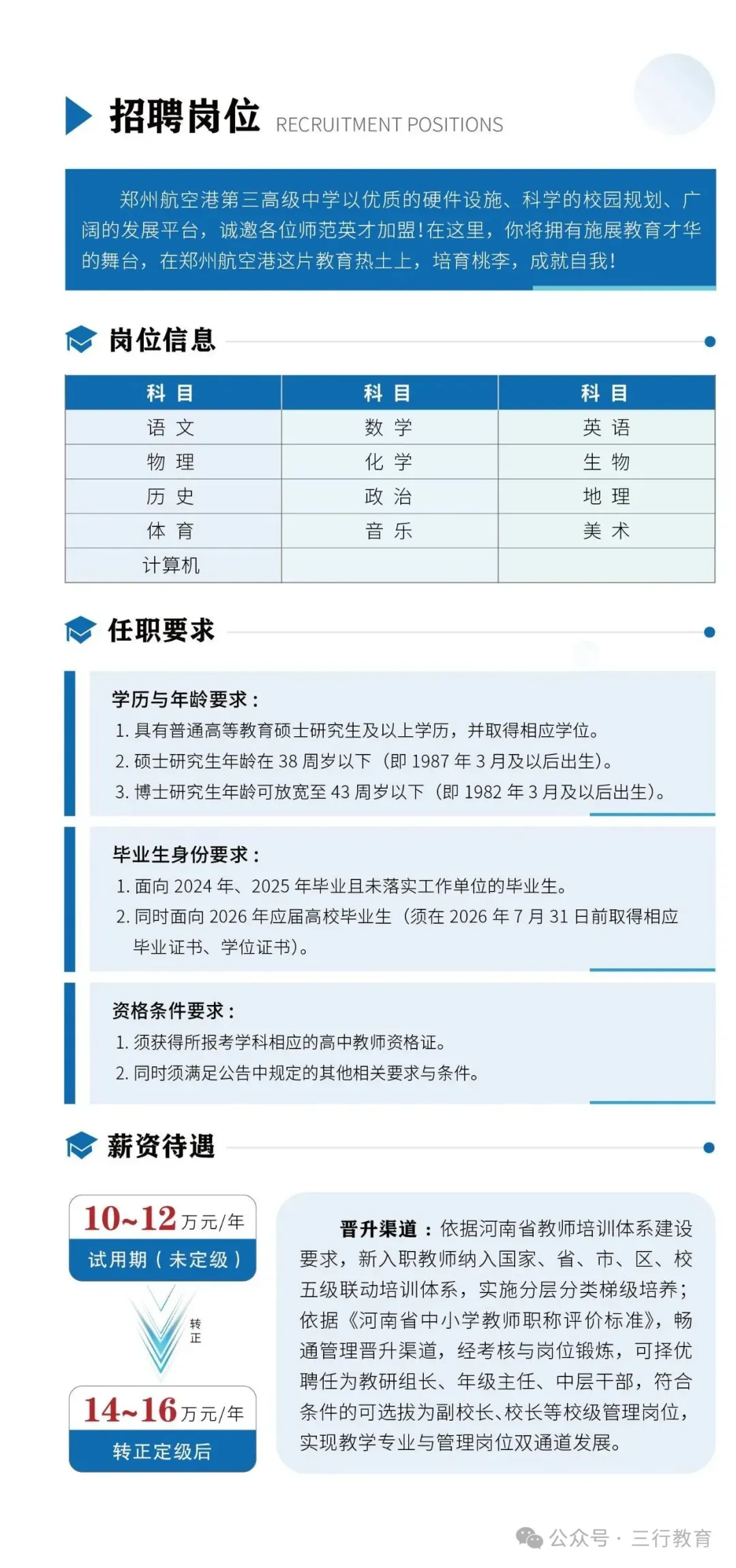 郑州航空港经济综合实验区第三高级中学招聘简章