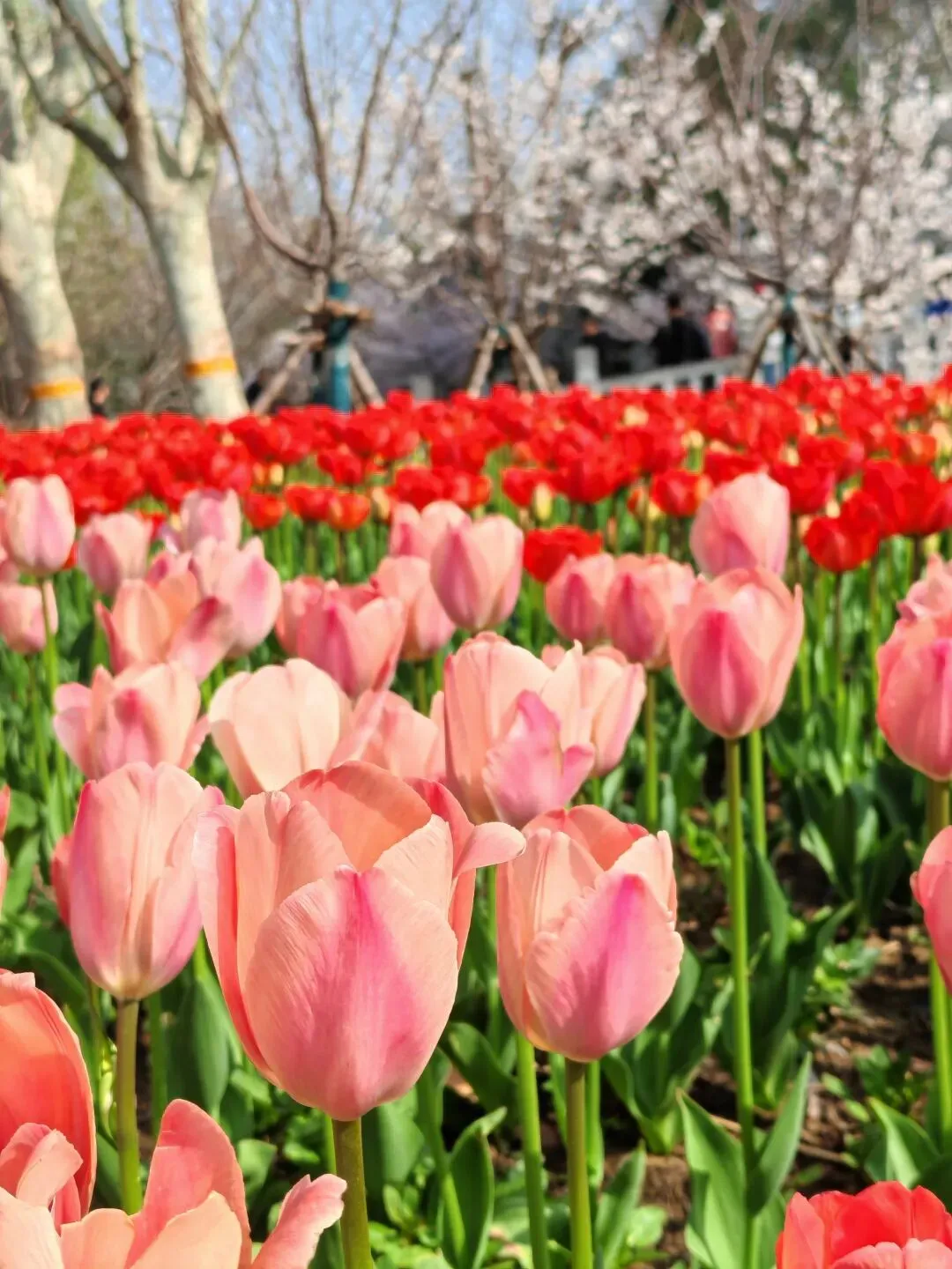 如果觉得前面几个公园跑起来麻烦,直接去人民公园,绝对不会失望。人民公园位于市中心,交通最方便。人民公园的郁金香正值花期,牡丹和郁金香同时盛放,一次逛园看到两种花海,赚到了。