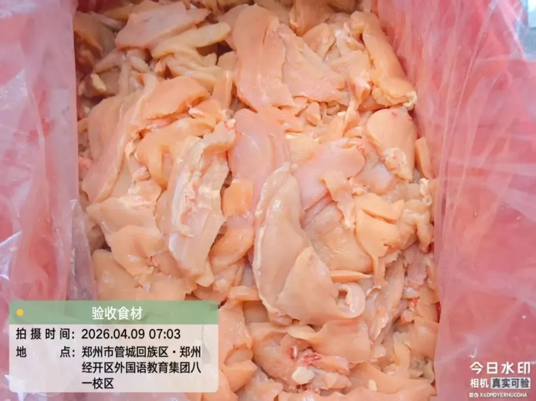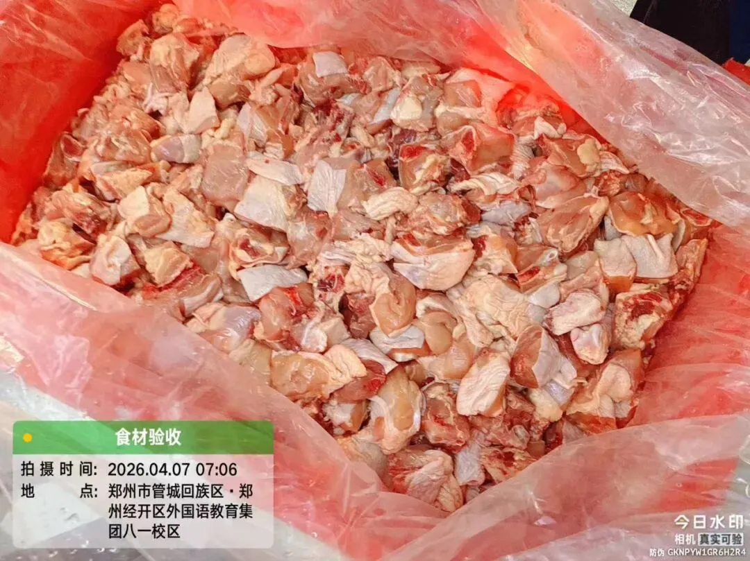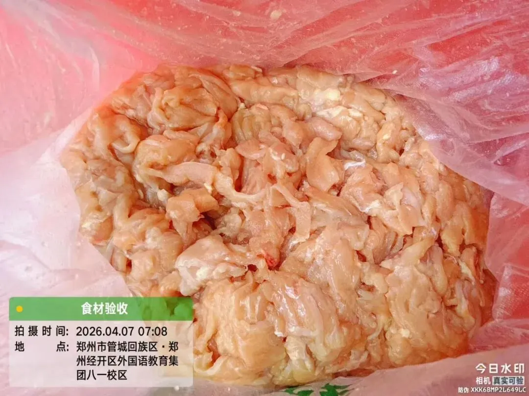 严把食品安全关,食材验收就是第一道大门,也是最重要的一道关卡。为了让师生吃的健康、吃的安心,学校领导及总务处工作人员秉持着严谨负责的态度,每日早上6:00就开始忙碌,对食材供应商送来的蔬菜、鲜肉、鸡蛋、面油、调料等食材进行验收。