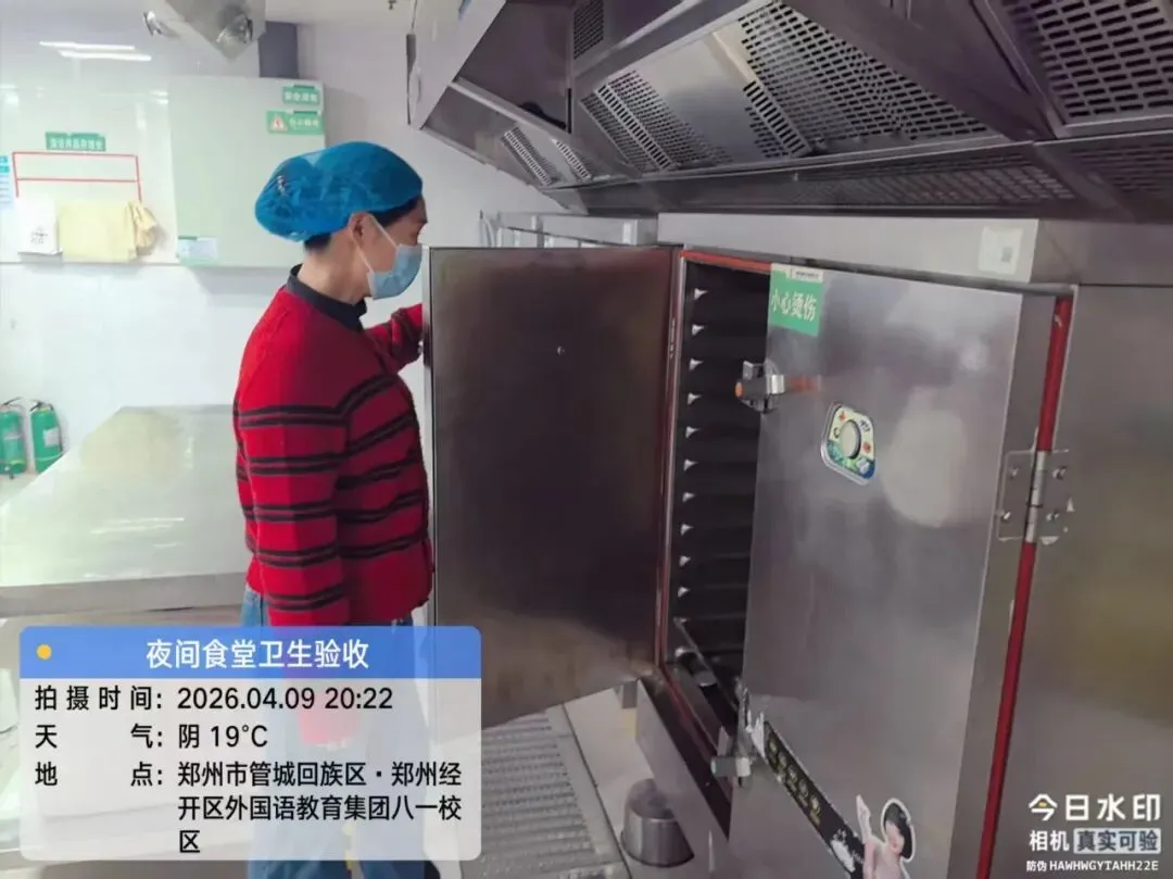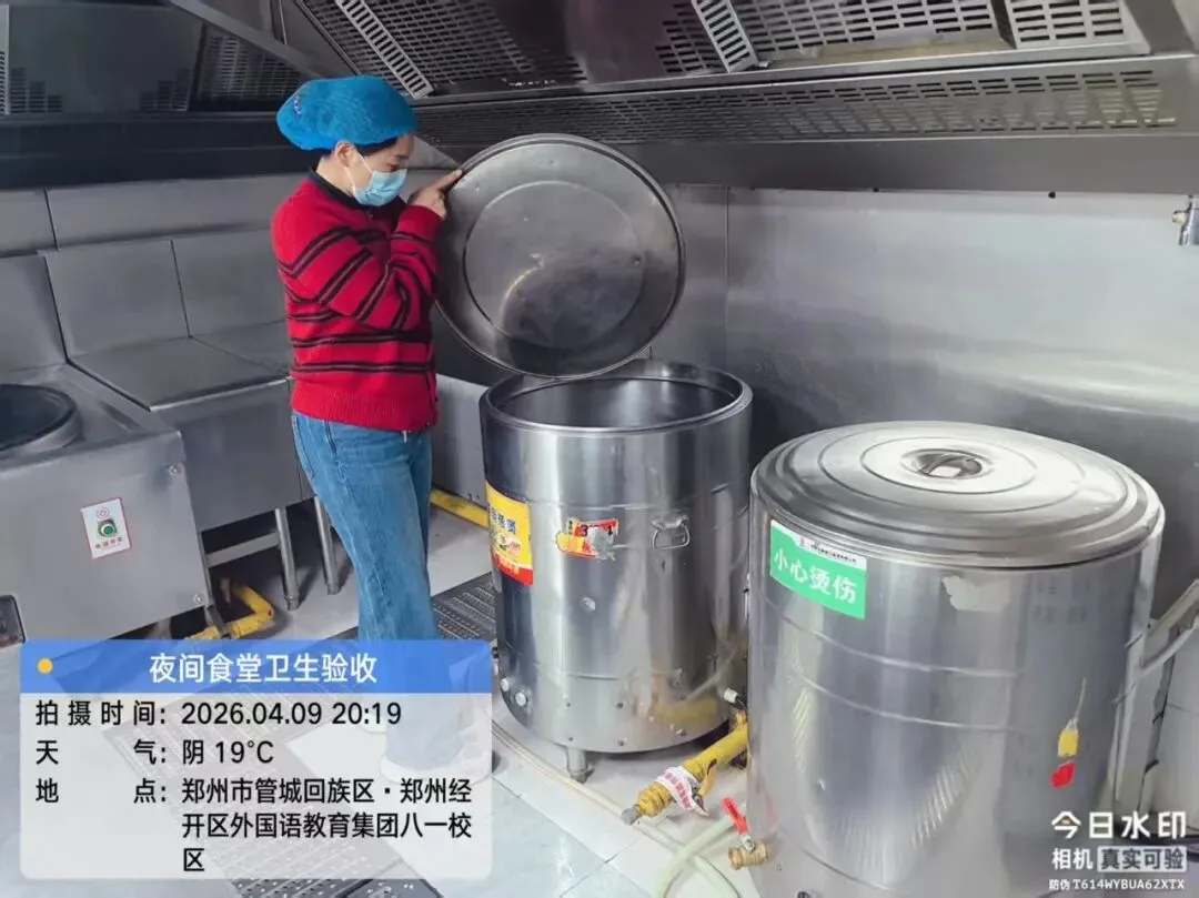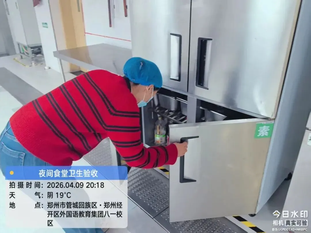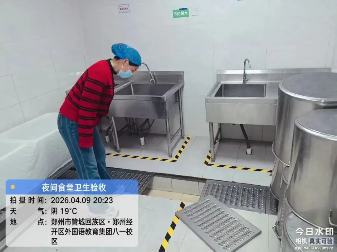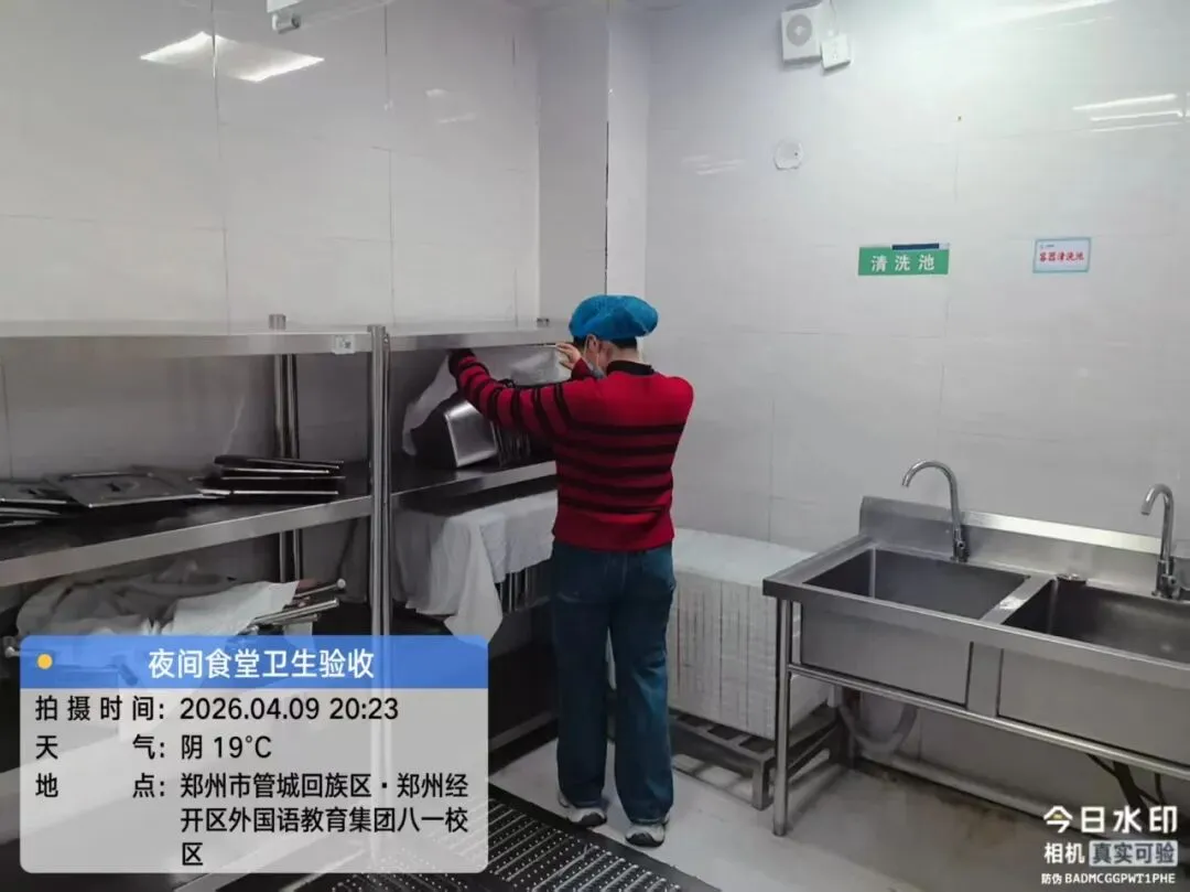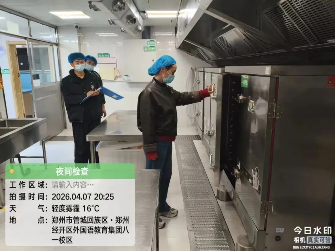 每天晚上9:00校级领导带领总务处人员和食堂从业人员对食堂卫生环境进行检查,三餐前对每样食品留样,为师生就餐保驾护航。