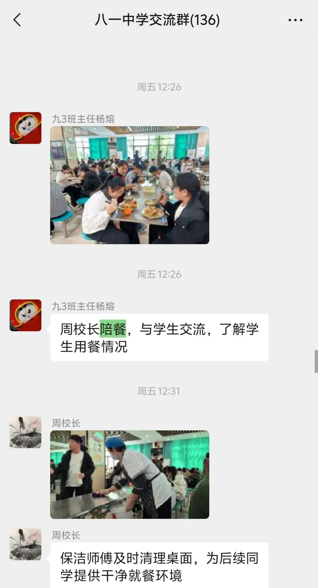 为确保食品安全工作落到实处,监督学校餐饮公司的作用,学校领导深入学生中间,了解学生对饭菜的喜好与建议。