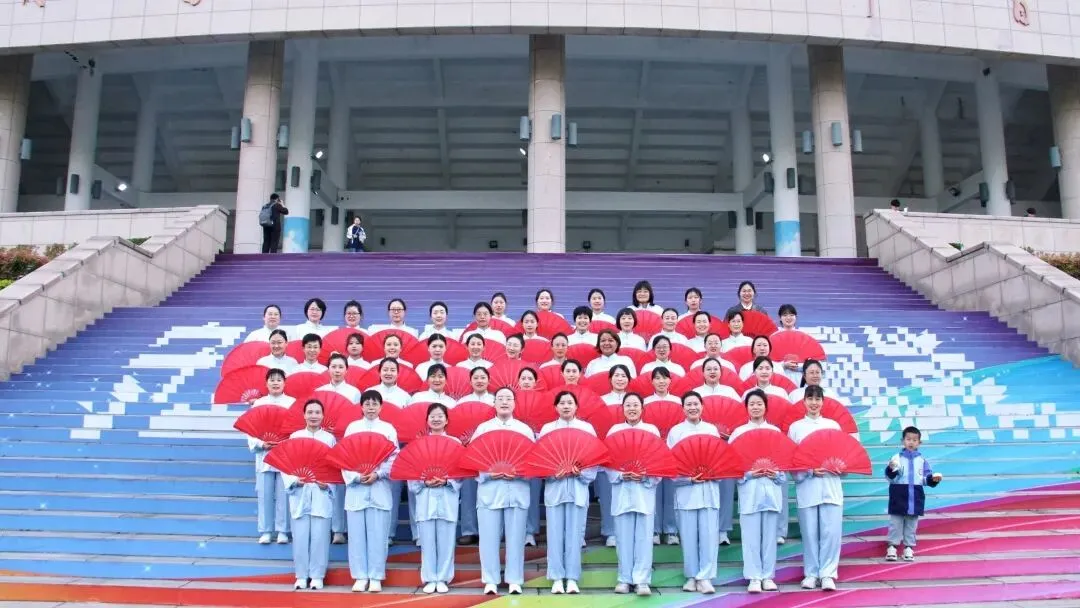 开幕式上,机关工会的66名女教职工与学校50余个基层工会的700余名女教工一起组成太极扇展演方阵,身着浅蓝色太极服,手持红扇,伴着悠扬古典的乐曲舒展身姿。一招一式刚柔并济、开合有度,将传统太极文化的深邃底蕴与现代女性的飒爽英姿完美融合,赢得了现场师生的阵阵掌声与高度赞誉,展现了郑大女教工的卓越风采。