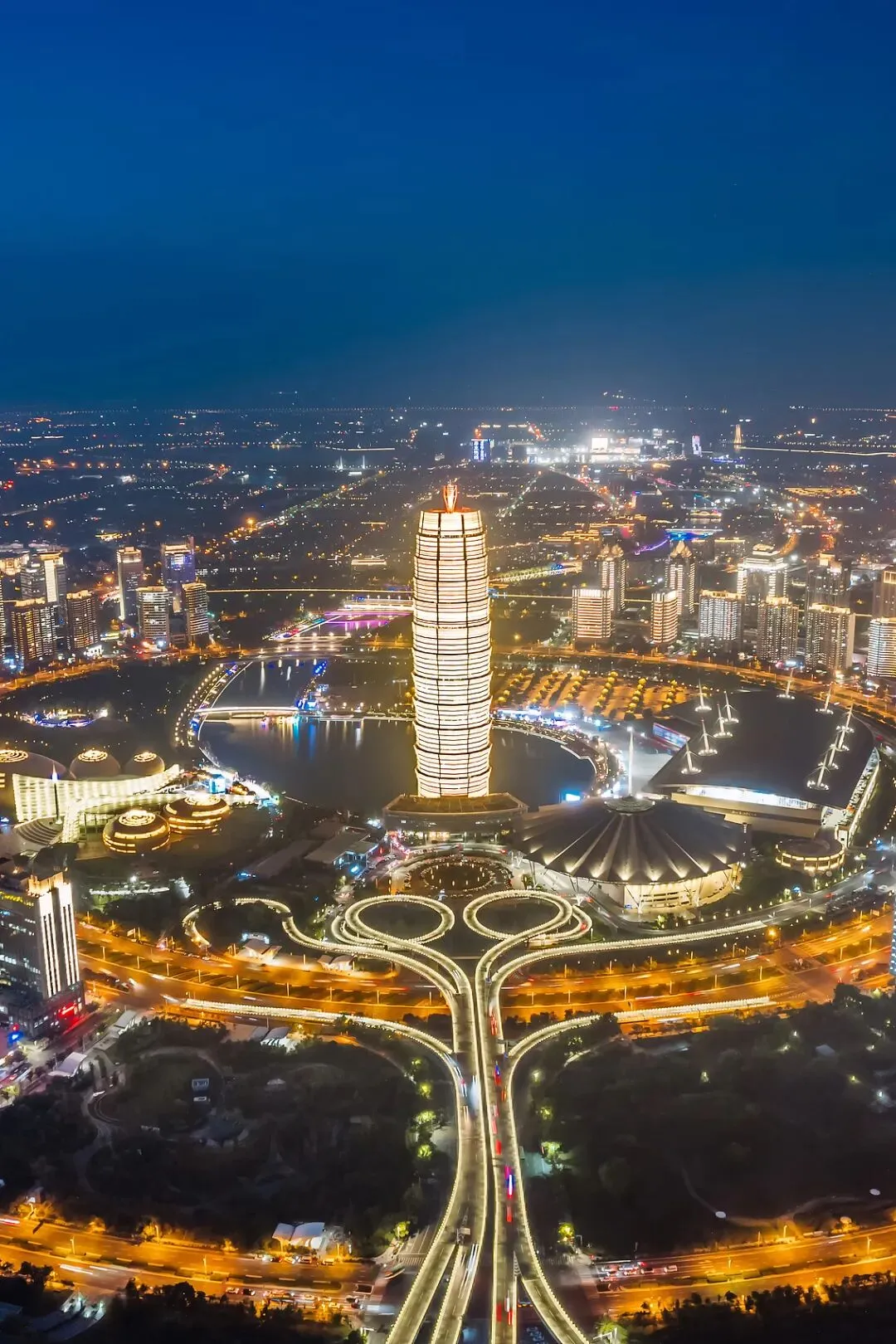 站在中原福塔九十九层看郑州:大玉米,高铁站,体育中心,电视塔,林立的高楼,车水马龙的街道,一派繁荣景象!