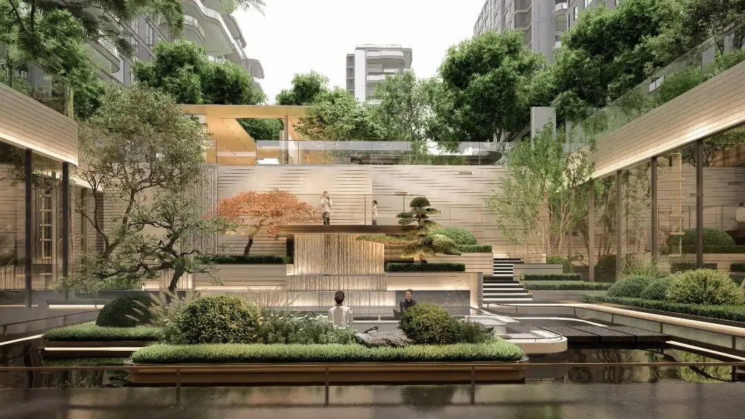 通过垂直绿化、空中花园、屋顶绿化、住宅阳台绿植等建筑空间手法,为郑州许一座花园私岛,创造「私屿双庭云墅」奢居。