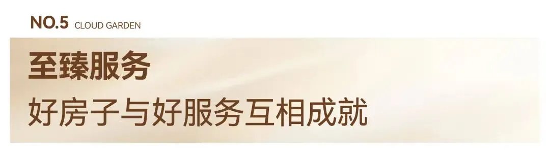 一进艺术馆级入口门庭/二进森奢会客厅/三进立体下沉庭院/四进全景宅间花园/五进精装大堂入户。