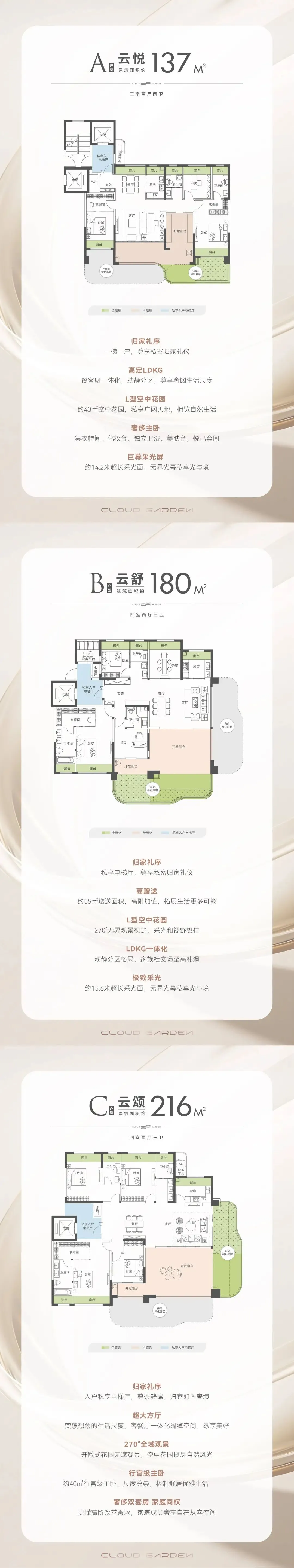 户型:137 ㎡-180 ㎡-216 ㎡-256㎡全四代宅