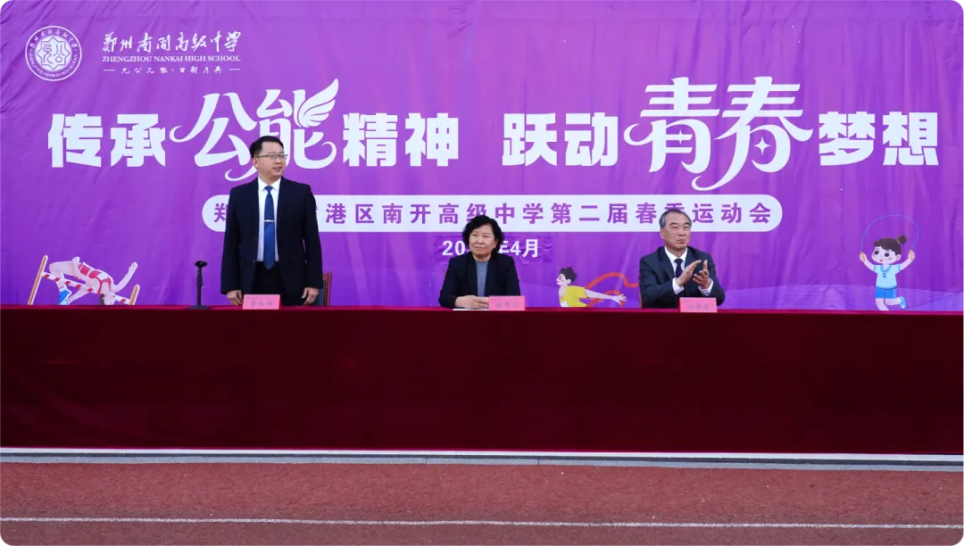 近日,郑州南开高级中学第二届春季运动会成功举办。全体师生齐聚运动场,以热情赴盛会,以拼搏致青春,共赴这场充满活力与热血的体育盛宴,书写属于南开的奋进篇章!郑州南开高级中学理事会理事长张秀兰女士、党支部书记马书臣、执行校长李永峰出席第二届春季运动会开幕式。党支部书记马书臣在开幕式上郑重宣布:“郑州南开高级中学第二届春季运动会,开幕!”李校长在致辞中谈到:回望历史,我们的老校长张伯苓先生在一个世纪前就发出了振聋发聩的呐喊:“强国必先强种,强种必先强身。”今天,我们举办的第二届田径运动会,不仅仅是一场体育竞技,更是对南开百年“以体育人”传统的致敬与传承。一是:希望同学们在赛场上诠释“公能”精神。在赛场上,尊重对手、尊重裁判、为别人的精彩表现鼓掌;挑战自我、突破极限、跑得更快、跳得更高。三是:希望同学们以青春之激情,践行“日新月异”之校训,不断突破,永不停息。最后李校长指出希望全体裁判员和工作人员恪尽职守,公正裁决,热情服务;希望全体运动员发扬“更快、更高、更强、更团结”的奥林匹克精神,赛出风格,赛出水平。运动会开幕式上,各方阵依次通场亮相,国旗护卫队率先出场。伴随着激昂的军曲,队员托举五星红旗昂首阔步走过主席台。整齐的步伐和恢宏的气势,展现出郑州南开高级中学国旗护卫队严明的纪律作风和炽热的爱国情怀!紧随国旗护卫队之后的是“彩旗方阵”和“裁判员方阵”!随后各班级方阵按序出场,同学们精神抖擞、意气风发。来到主席台前,各班依次展示了精心准备的才艺表演——从活力四射的歌舞串烧,到创意十足的情景演绎,再到饱含家国情怀的集体合唱。每个班级都全员上阵,同学们默契配合、倾情投入,为运动会拉开热血沸腾的序幕……各班级方阵出场完毕后,由高一(13)班舞蹈特长生组成的“啦啦队方阵”为大家献上了青春洋溢、活力澎湃的啦啦操表演,直接将开幕式氛围推向最高潮!随后,裁判员代表田依老师和运动员代表高二(1)班贺华北同学分别代表裁判员和运动员宣誓。田依老师宣誓道:“坚决服从裁判长指挥、严格遵守裁判员纪律,以严肃认真的态度、公正严明的尺度、无私奉献的精神秉公执裁,绝不徇私舞弊,圆满完成各项裁判工作。”运动员代表高二(1)班贺华北同学宣誓道:“我代表全体运动员郑重宣誓:遵守规则、尊重裁判、尊重对手;顽强拼搏、团结友爱、公平竞争;赛出水平、赛出风采、不负青春!”开幕式的帷幕缓缓落下,国旗的荣光、领导的嘱托、方阵的风采、师生的期盼,都定格成这场春日盛会最动人的开篇。欢乐而精彩的开幕式,不仅展示了郑州南开高级中学学子们昂扬的斗志和团结的风貌,更凝聚了全体师生奋进的力量,为接下来运动会正赛拉开了完美序幕!欢迎继续浏览下篇文章,欣赏“运动会正赛”精彩瞬间,一同见证南开少年在赛场上的热血与荣光!