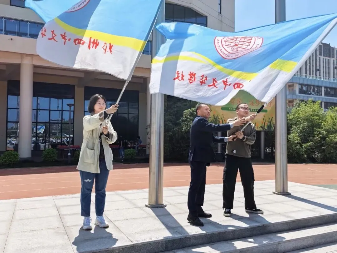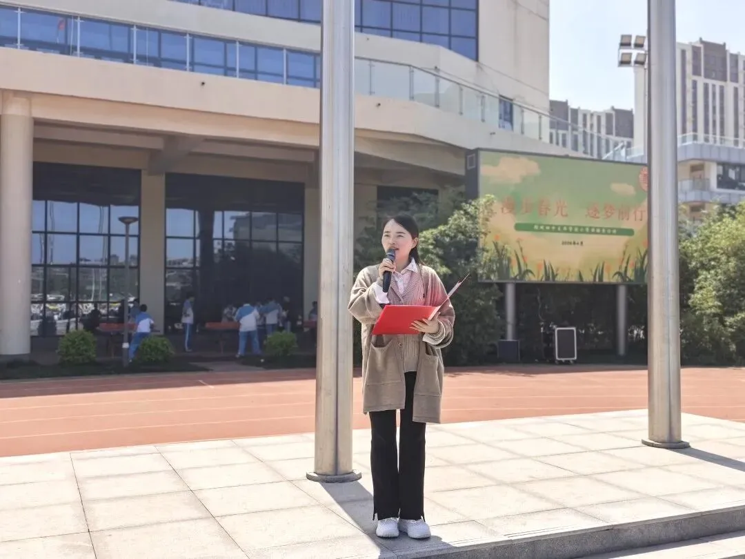 活动伊始,学校举行春游出发仪式。郑州四中文华学校小学部副校长于珂珂上台致辞并送上美好期许,重点强调安全准则。随后,郑州四中文华学校校长王旭东亲自为各班授旗,校旗迎风飘扬,踏青之旅正式开启。