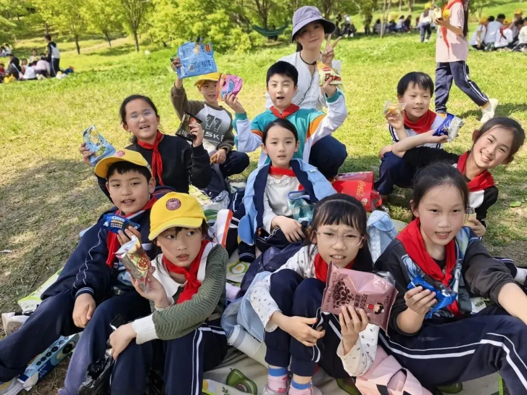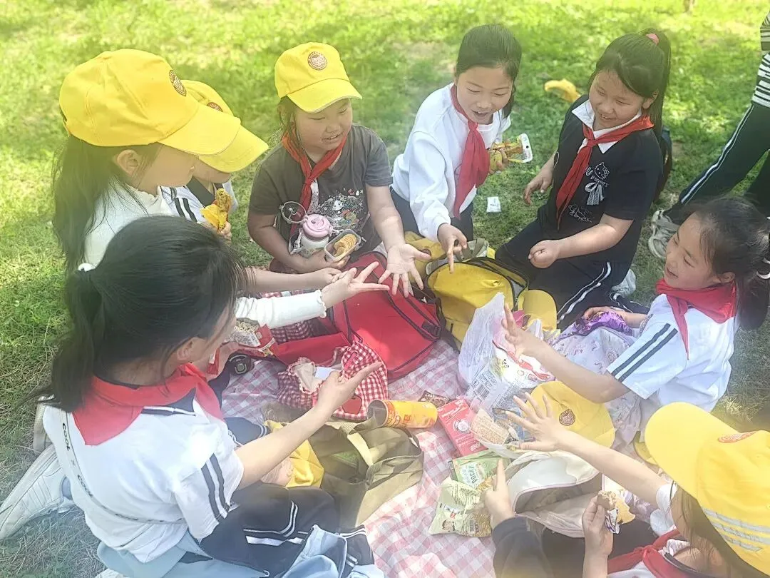 稍作休整后,孩子们迎来欢乐的美食分享与游戏环节。大家围坐在一起,互相分享精心准备的零食、水果与点心,在欢声笑语中增进友谊、传递温暖。趣味小游戏轮番上阵,师生同乐、同伴互助,清脆的笑声回荡在公园上空,让春日踏青之旅充满温馨与快乐。
