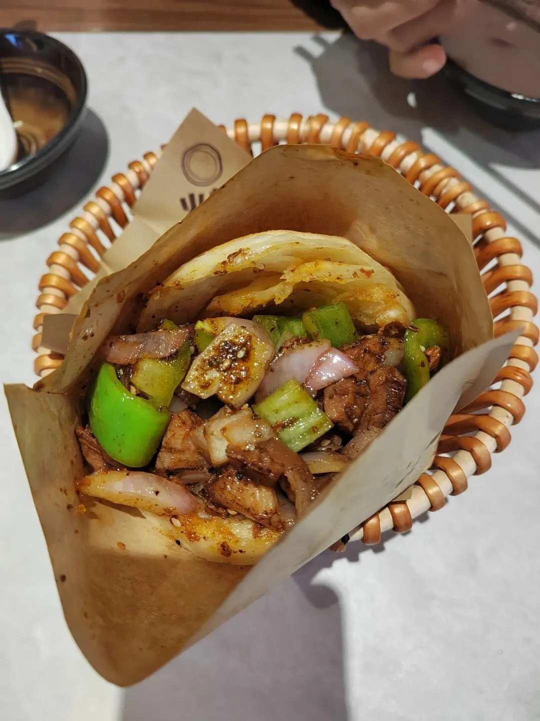 用餐环境干净卫生,非遗文化做的很好,服务贴心。肉夹馍做的也超级棒,烧饼焦脆暄香,夹的肉是红白相间的五花肉,配上青椒洋葱,咬一口是口味丰富的香,让人吃的满足。提供免费的红豆粥,用的是赤红豆加小红枣,香糯软烂,微甜不腻。