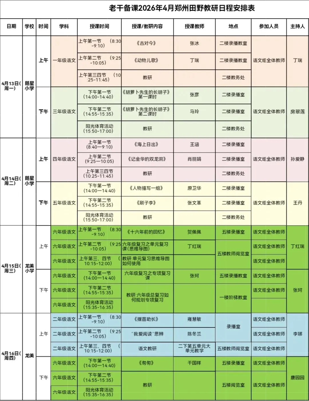 4月13日到16日,四天,两所学校,六个年级,十多节课。(其实17日老干备课团队会再次到郑州经开区六一小学进行满满一天的教研,只是没有直播啦)