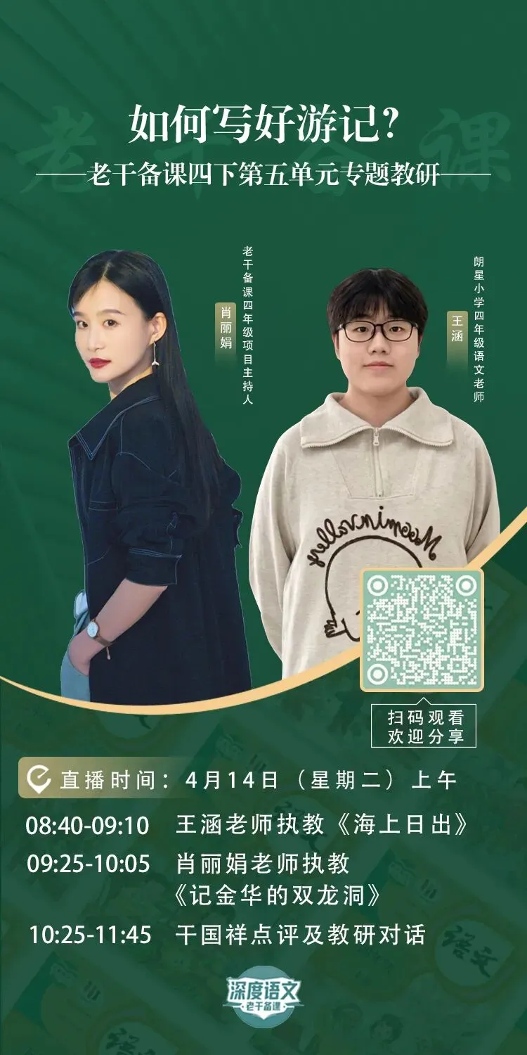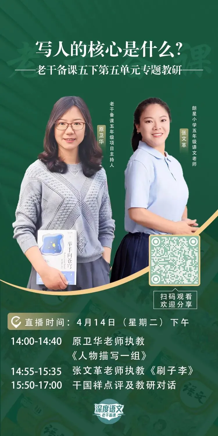 其他年级也一样——一年级的儿歌连着低段识字如何在情境里扎根,二年级利用“我爱阅读”作为材料对经典课文进行思辨,四年级的写景文、五年级的人物描写,都是用一篇典型课文,撬动整个单元的理解。这是老干备课一直在做的事:不让知识碎成一地,而是帮老师和学生找到那条可以贯穿始终的线。