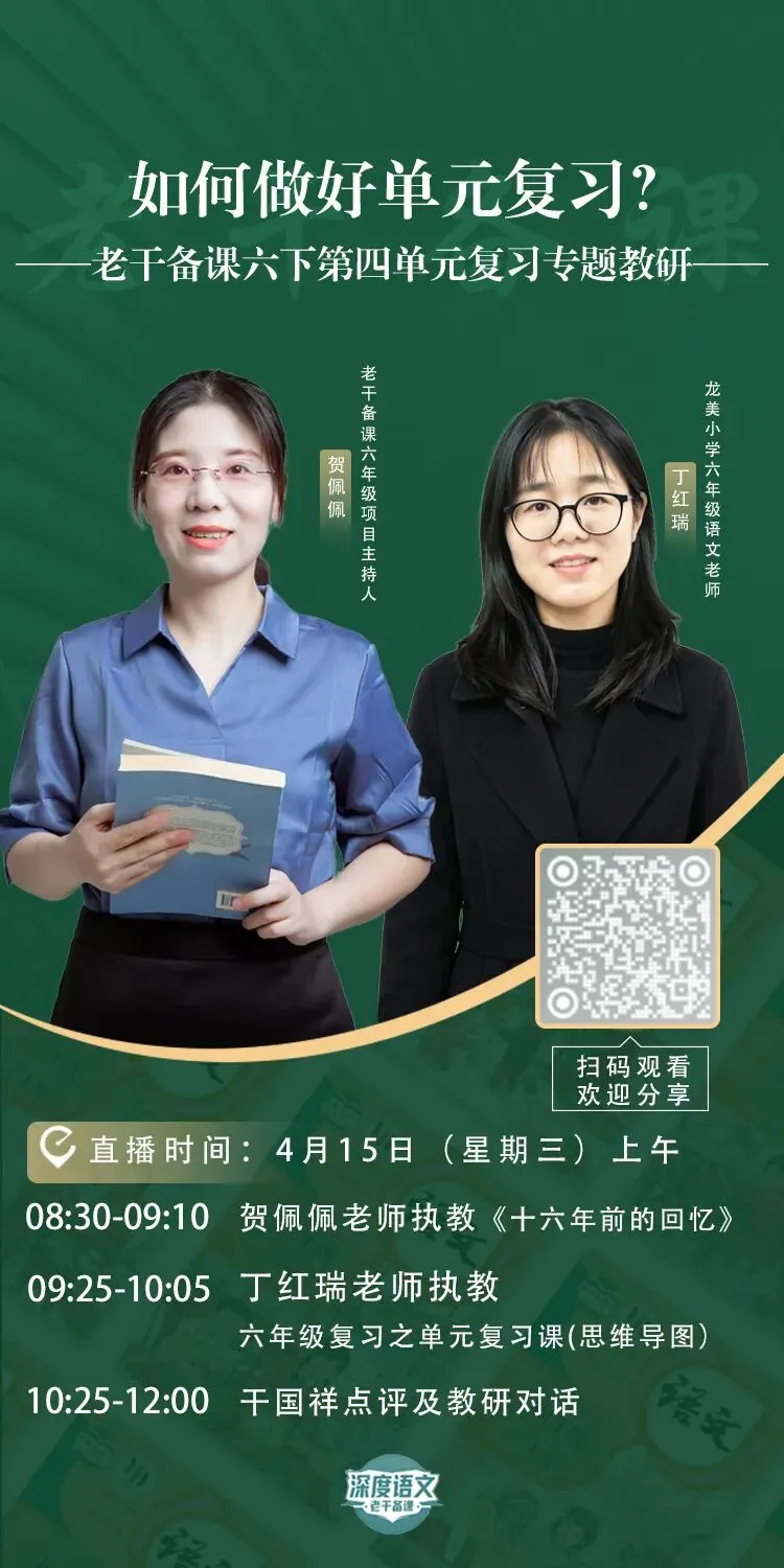 六年级有点不一样。除了《十六年前的回忆》,我们还安排了两节复习课。单元复习怎么用思维导图打通脉络?专项复习怎么规划才不乱?毕业班老师最头疼的问题,这次我们试着给出一些答案。