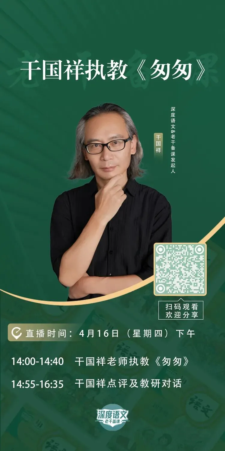 他会把《论语》里的“逝者如斯夫”、《春江花月夜》里的“人生代代无穷已”,一一带到孩子们面前。让他们看见:原来对时间的焦虑,不是朱自清一个人的,是中国人写了两千多年的主题。而朱自清,只是替我们说出了这一代人的那一句。