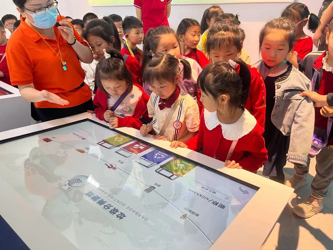 进入环保互动体验厅,孩子们兴趣浓厚,通过互动小游戏对日常生活中常见的垃圾进行分类,快捷掌握了垃圾分类的方法。