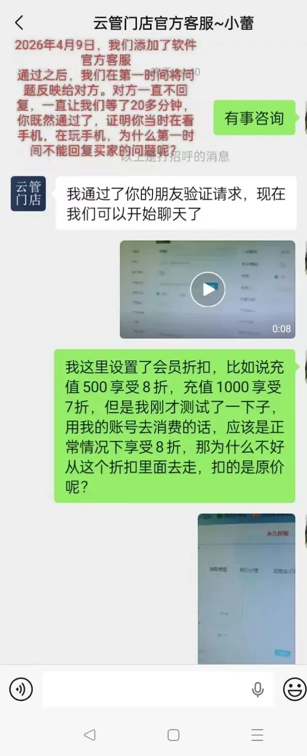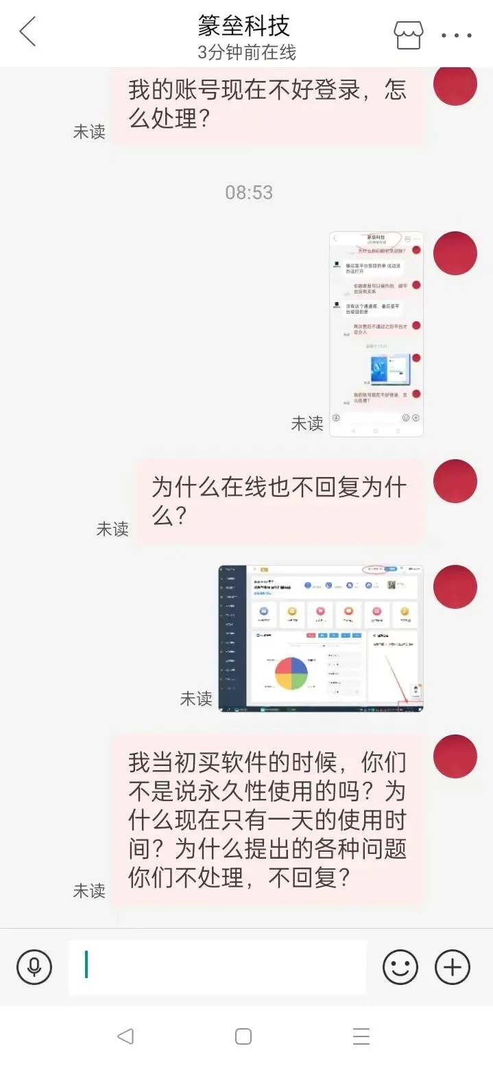 商家在销售时明确承诺**永久免费使用**,但本人仅正常使用一天后,账号即被限制使用,明显是商家在后台恶意篡改权限、设置使用期限,以“永久使用”为噱头实施虚假宣传,骗取消费者付款。卖家说没有实物软件,提供一个注册链接让我们使用软件,本人多次沟通,商家始终推诿逃避,拒绝优化缺陷、拒绝恢复使用,拒不履行任何售后与合同义务,已构成**商业欺诈、严重违约**。