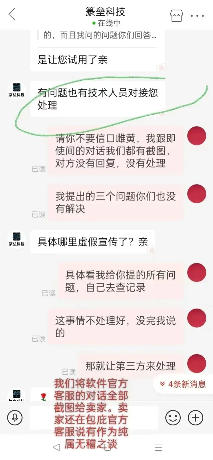 拼多多平台店铺【篆垒科技】;投诉事由:该商家销售与宣传不符的缺陷软件,售后恶意关闭售后通道 恶意推诿、拒绝解决问题,严重侵害消费者合法权益。