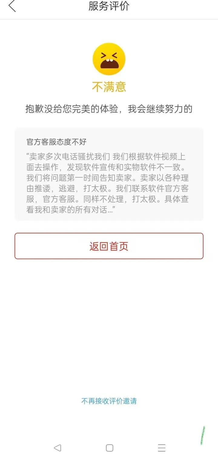 ❌产品严重不符+商家恶意违约+虚假宣传:安装使用后发现,该软件存在**重大功能缺陷**,完全无法按照官方教学视频进行正常操作,软件实际页面与宣传页面严重不一致,核心功能无法正常运行,,却发现**实际软件界面与宣传页面完全不符**,核心功能模块缺失、操作逻辑混乱,属于明显不合格、不符合使用目的的劣质产品。本人第一时间录制功能缺陷视频发送给商家,要求核实处理。并将出现的问题我们第一时间联系卖家告知情况并提供相关图片和视频以及文字,卖家打太极推诿逃避,截止2026年4月13卖家视而不见态度极其冷漠。