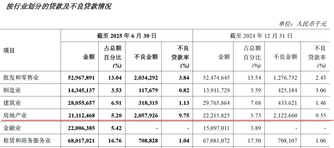 端看郑州银行2025年中报数据,截至2025年上半年该行房地产贷款不良金额还有20.57亿元,不良率更是高达9.75%;但仅仅半年后,这两组数据分别降为9.4亿、5.11%。